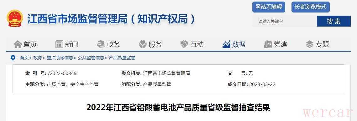 具体来说,江西省市场监督管理局在2023年曾发布过关于铅酸蓄电池产品质量监督抽查结果的公告。根据公告: