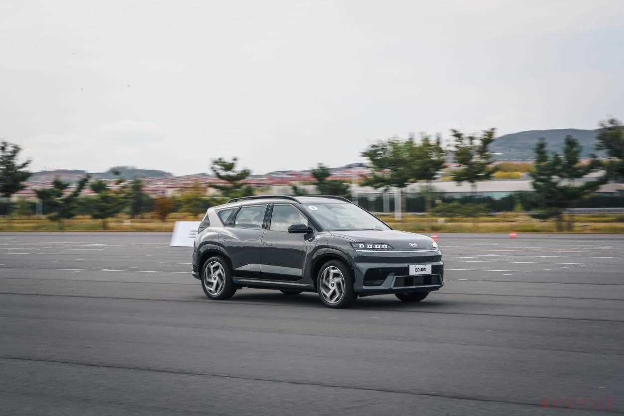 再聊聊底盘,这台车基于E-GMP纯电平台打造,悬架是前麦弗逊加后五连杆,还经过了300多组减振器调校,实际开起来能感觉到滤震做得比较均衡。走那种有细碎颠簸的路面时,比如小区里的石板路或者国道上的小坑洼,车身不会有明显的颠簸感,座椅也不会把震动直接传上来,不会觉得硌腰;就算遇到大一点的减速带,放慢速度过,也没有多余的晃动,不会像有些车那样,过减速带后拉不住车身,还得晃两下才能稳住。