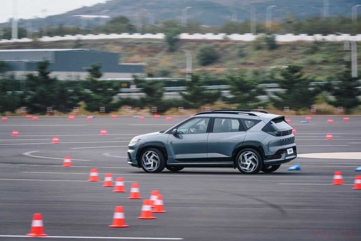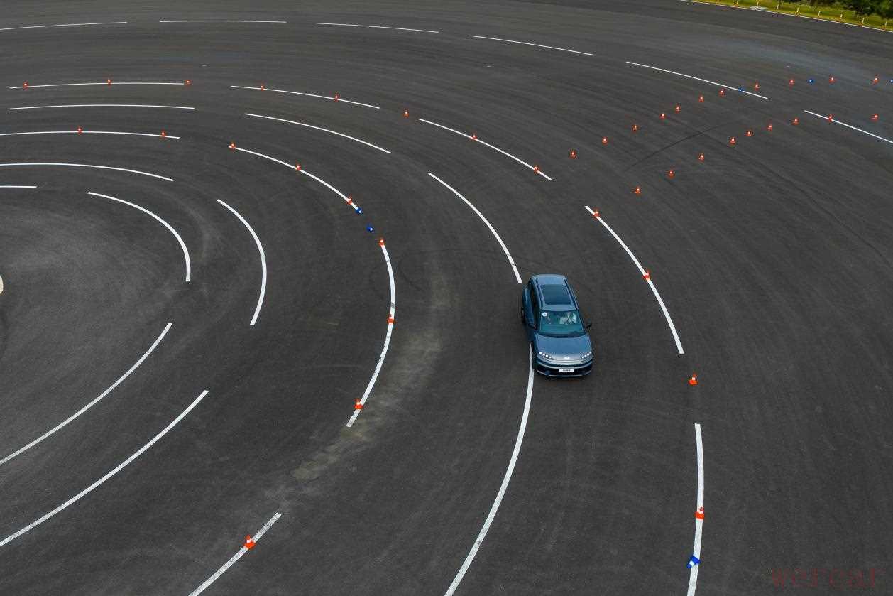 喵哥还了解到,北京现代EO羿欧的电池放在底盘中央,所以底盘配重前后比较均衡。在遇到需要快速变道的情况,车身的响应很及时,不会有拖沓的感觉,变向时重心偏移不明显,所以开起来很稳。另外,ESP 的介入也比较柔和,在做麋鹿测试的时候,就算有点极限操作,车身也不会突然甩一下,系统会慢慢修正轨迹,不会让人觉得突兀。