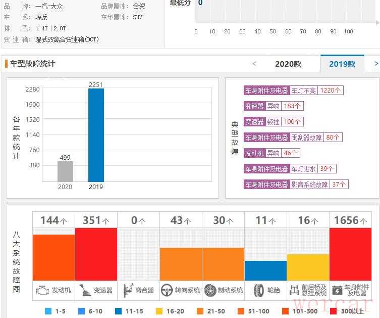 由于我们考虑到这是一款双离合变速箱,因此并没有把大量车主投诉的存在严重顿挫放进去。然而就算是删去变速箱顿挫和宝来6AT变速箱,一汽大众包括迈腾、速腾、探岳、高尔夫在内的多个搭载7速双离合变速箱的车型,均被大量车主投诉存在以上提到的那些质量问题,不知道一汽-大众对此有什么要解释的?