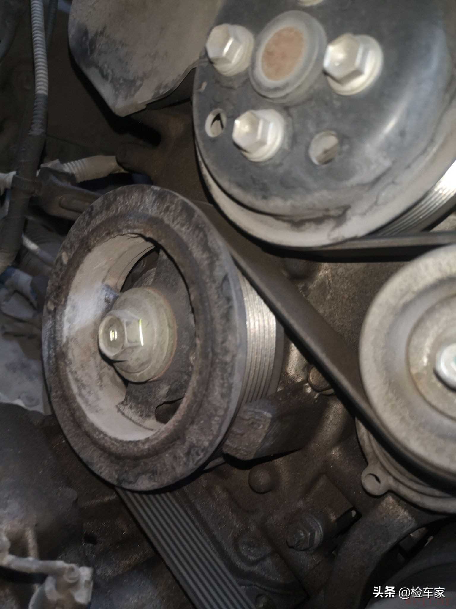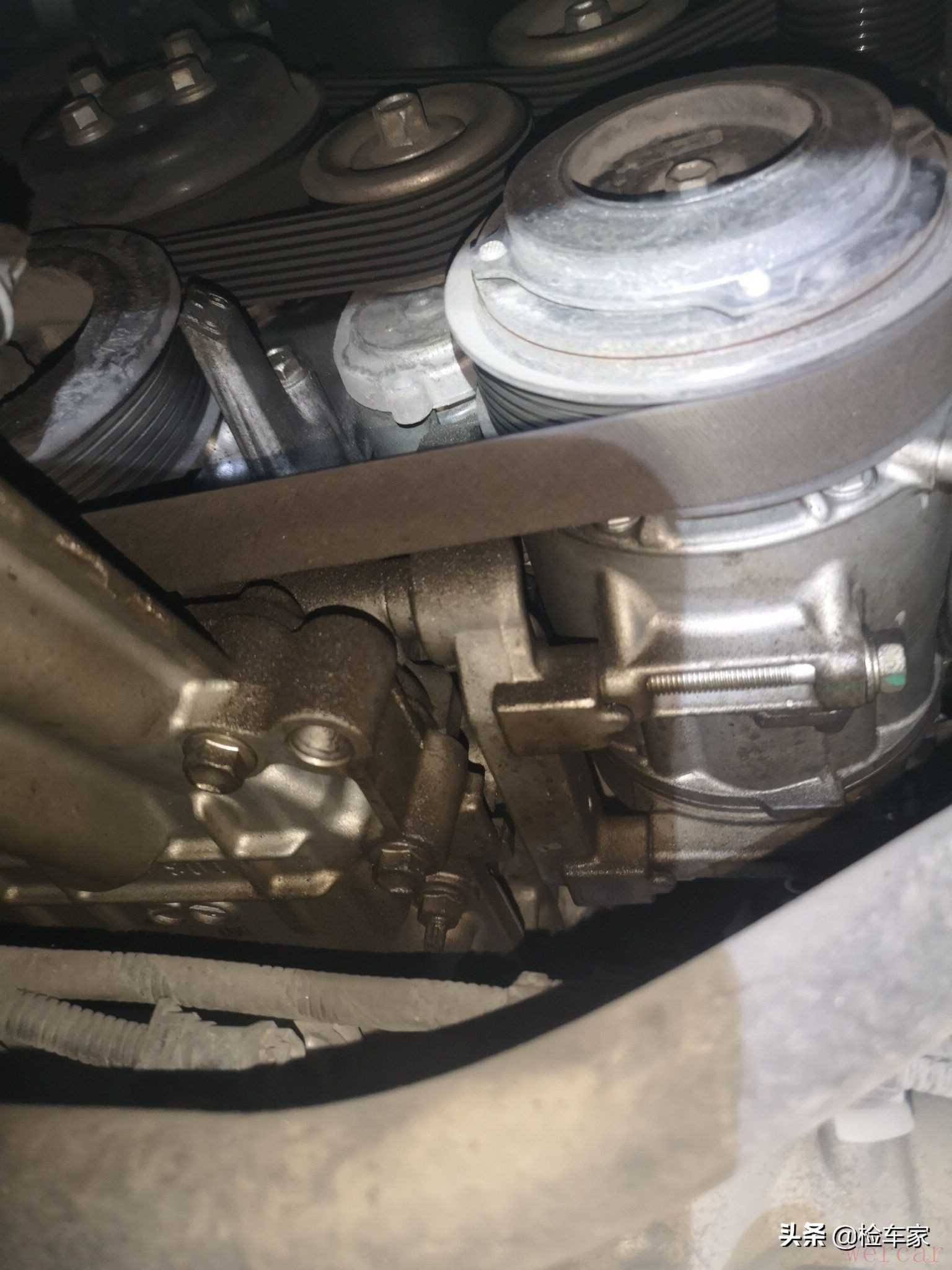 接着我们看一下车辆的机械方面的情况,这里可以看到气门室盖部分存在漏油的情况,众所周知,这个2.5L的发动机稳定性比起3.0的要稍逊半分,同款发动机在十多万公里的时候存在漏油的情况英俊我也见过不少了,后期肯定是需要整备的,但也不用花太多的钱。