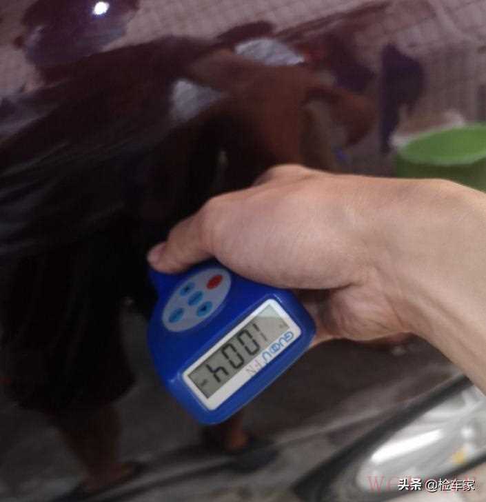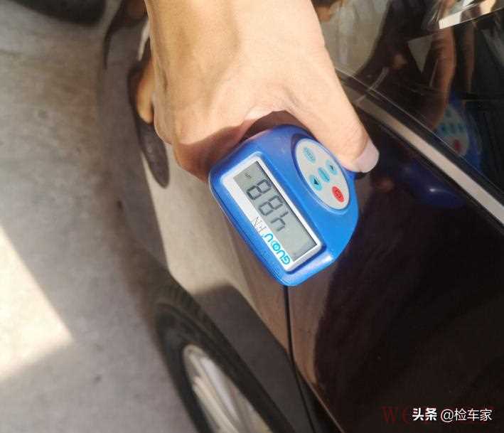 本来看到这里应该是要跟粉丝先探讨一下,但大家可以看到图片中的车身反光,卖家大哥一直跟在旁边,粉丝也刚好在打电话,英俊我只能装的像没事人一样继续检测,同时这个图可以看到右侧叶子板数值不低,但位置比较靠前,应该是另一起剐蹭导致的。
