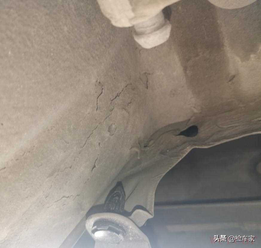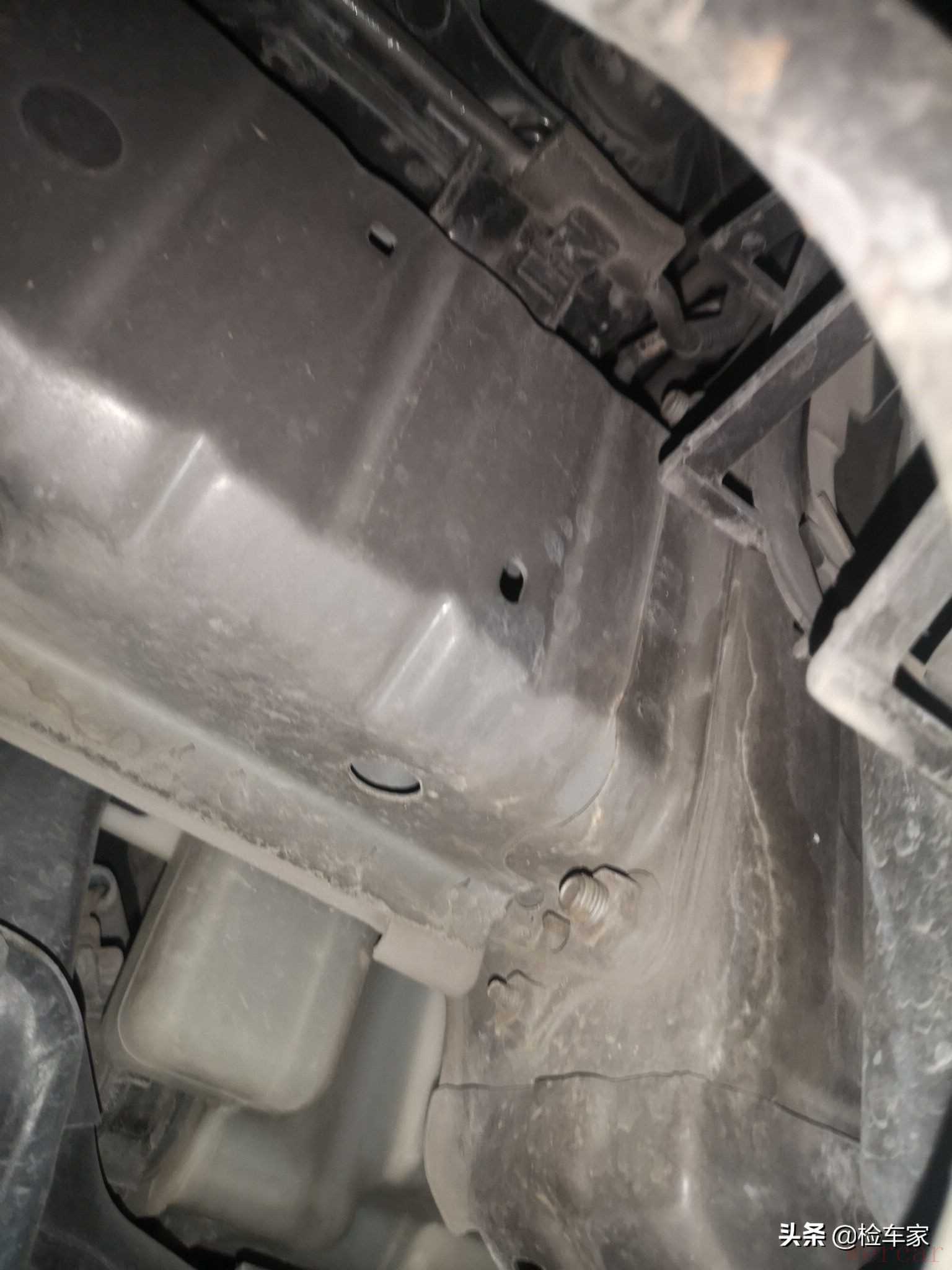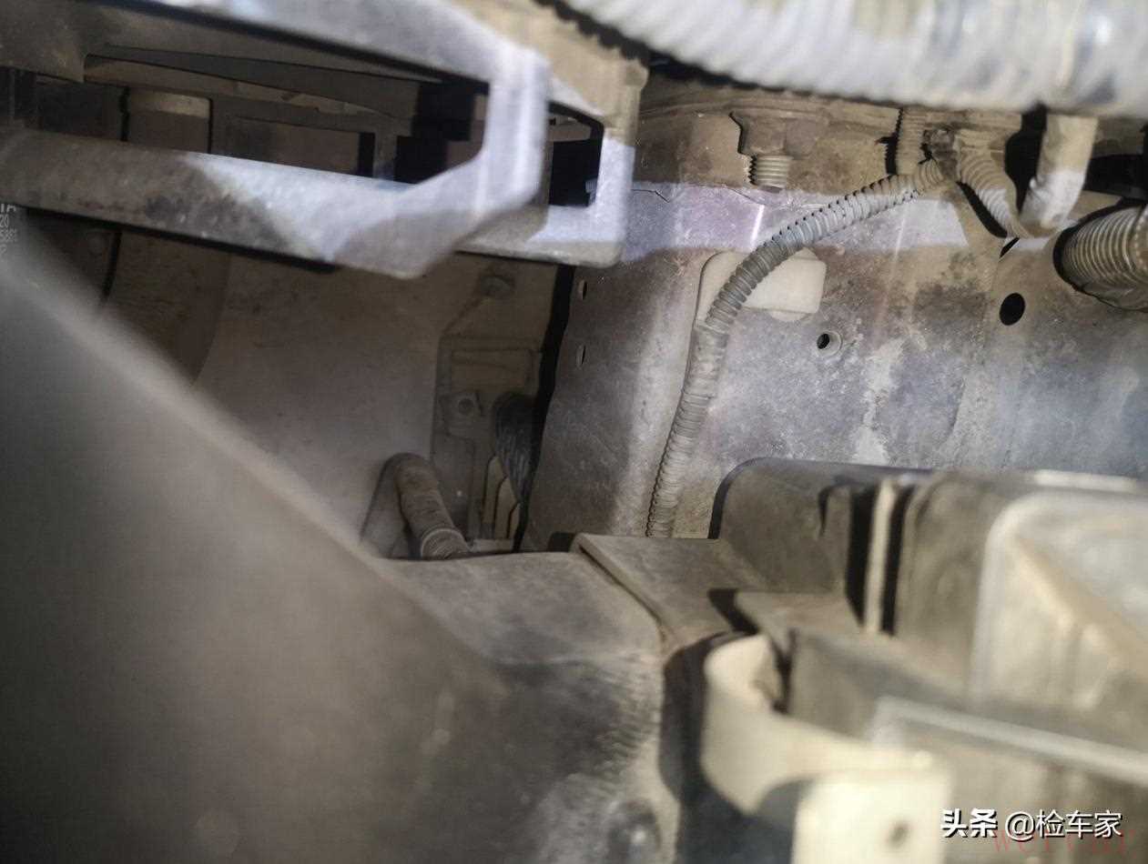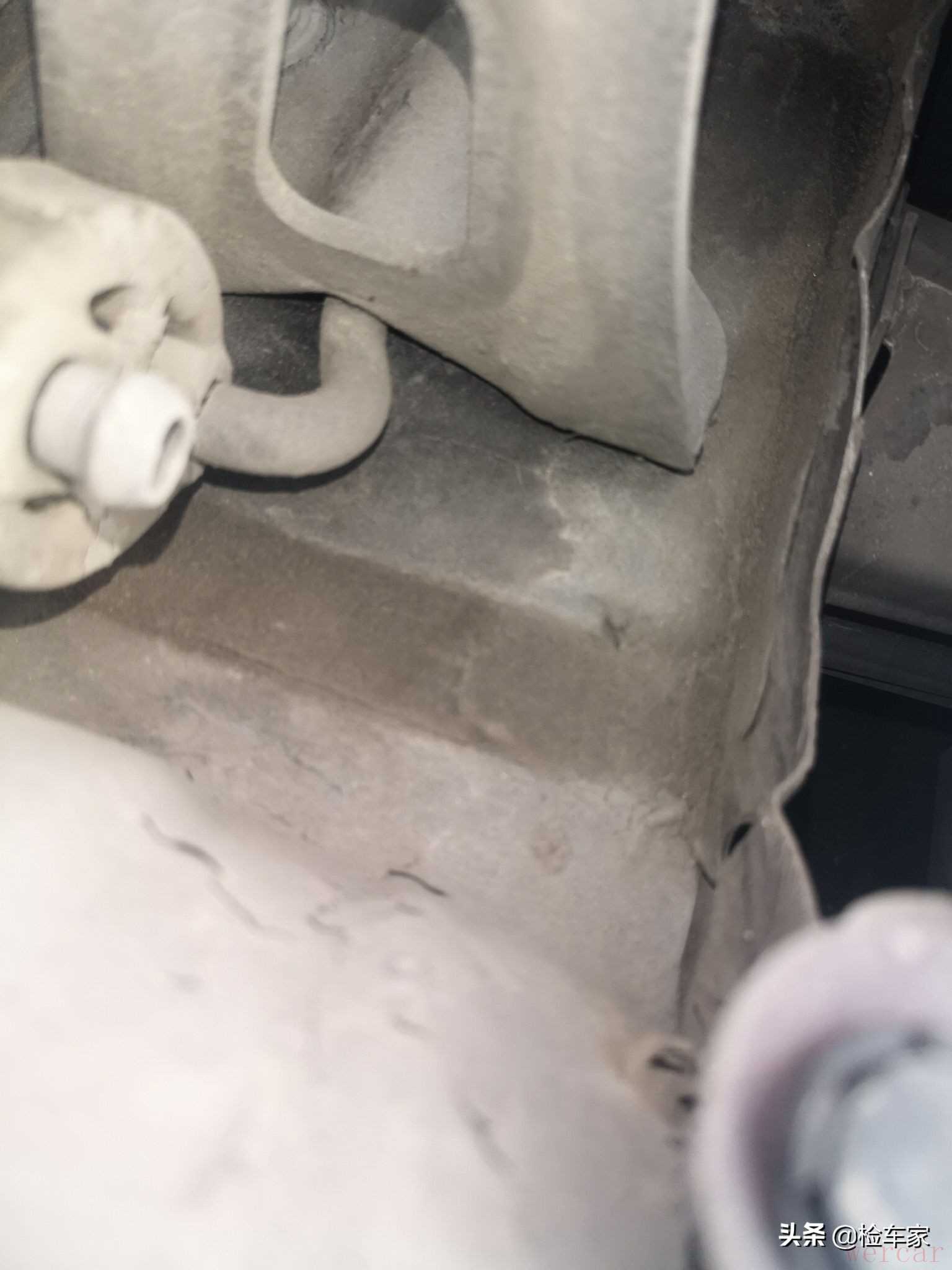 发动机机脚部分检测,并未发现有拆卸的情况,这说明还保持着原装出厂的状态,并没有因为事故导致吊装。等下底盘部分再看看变速箱机脚是否存在拆卸。