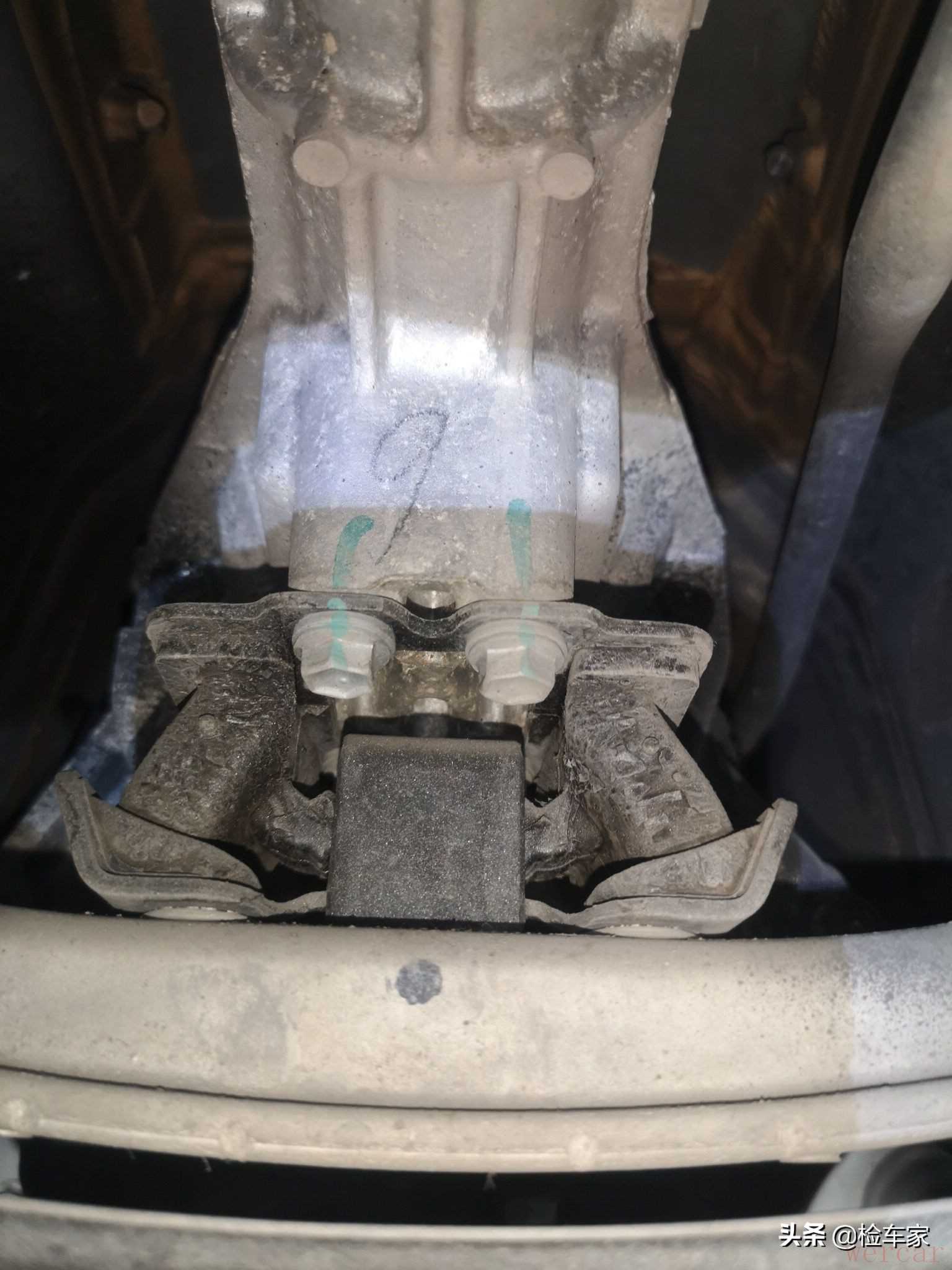 发动机机脚螺丝依然纹丝未动,上面的原厂安装记号都还在。