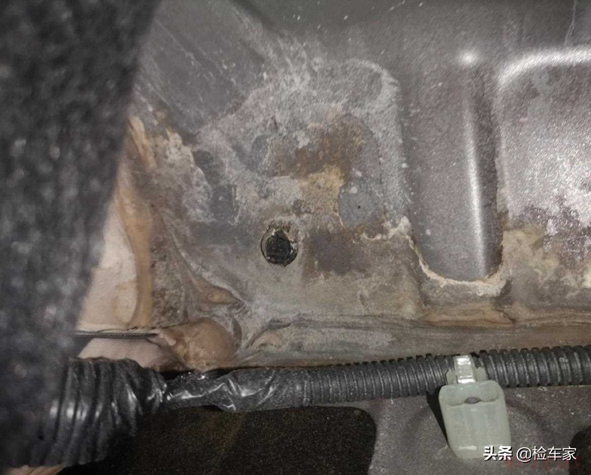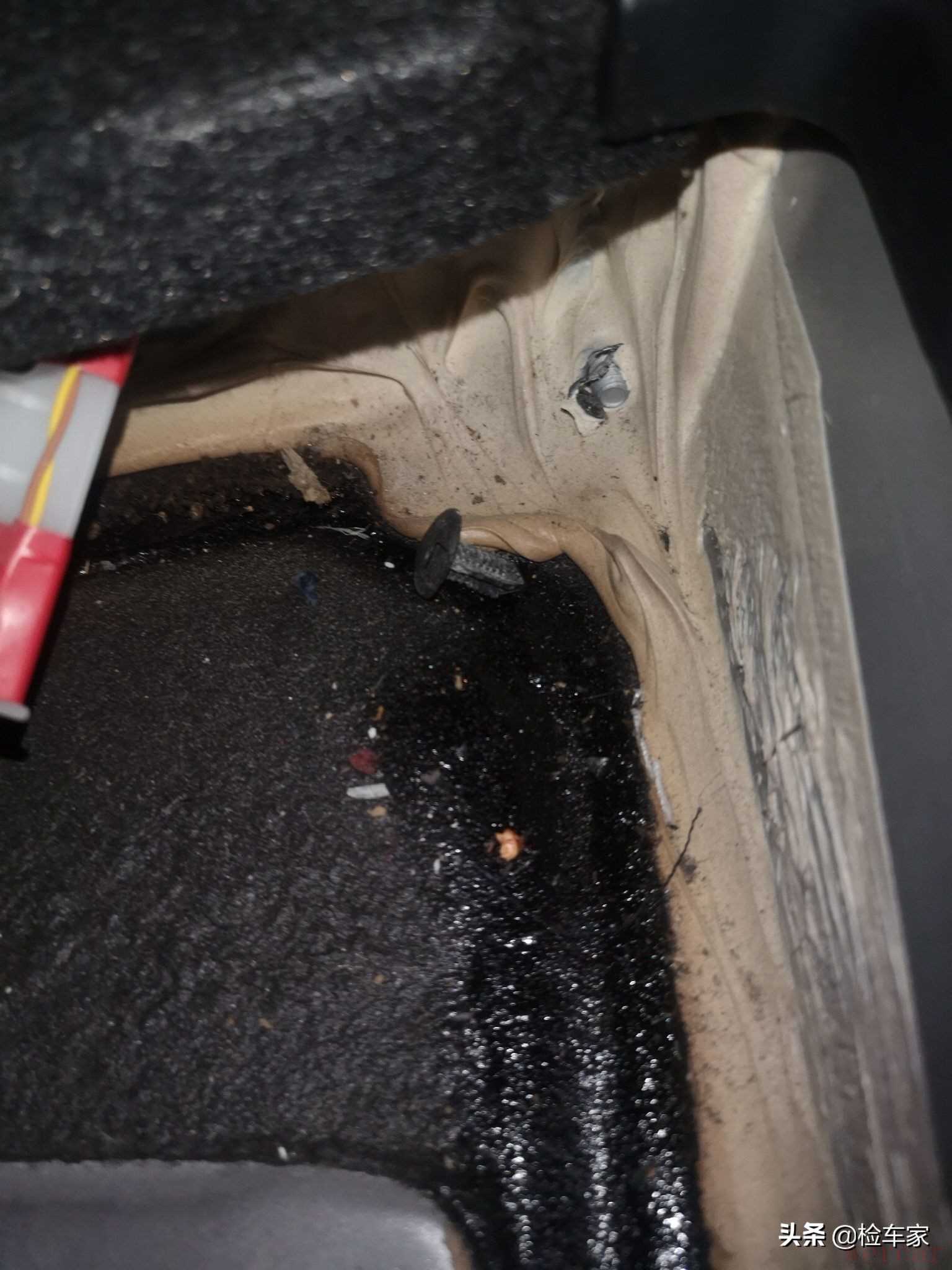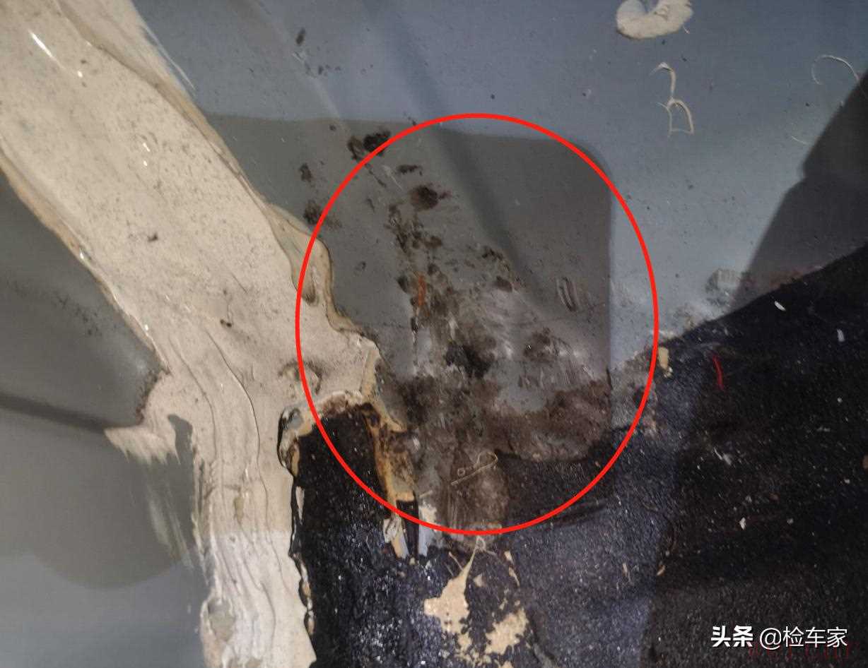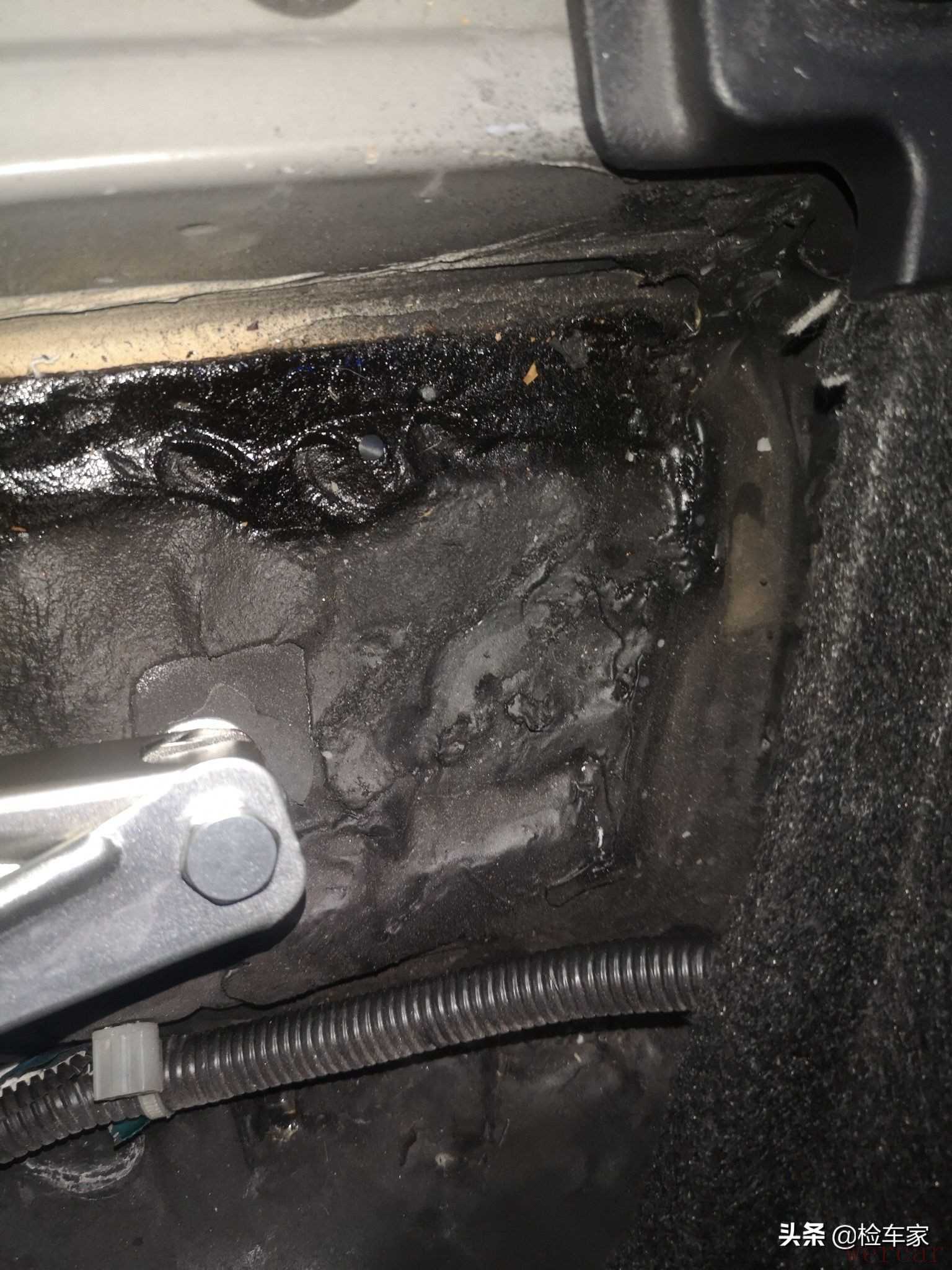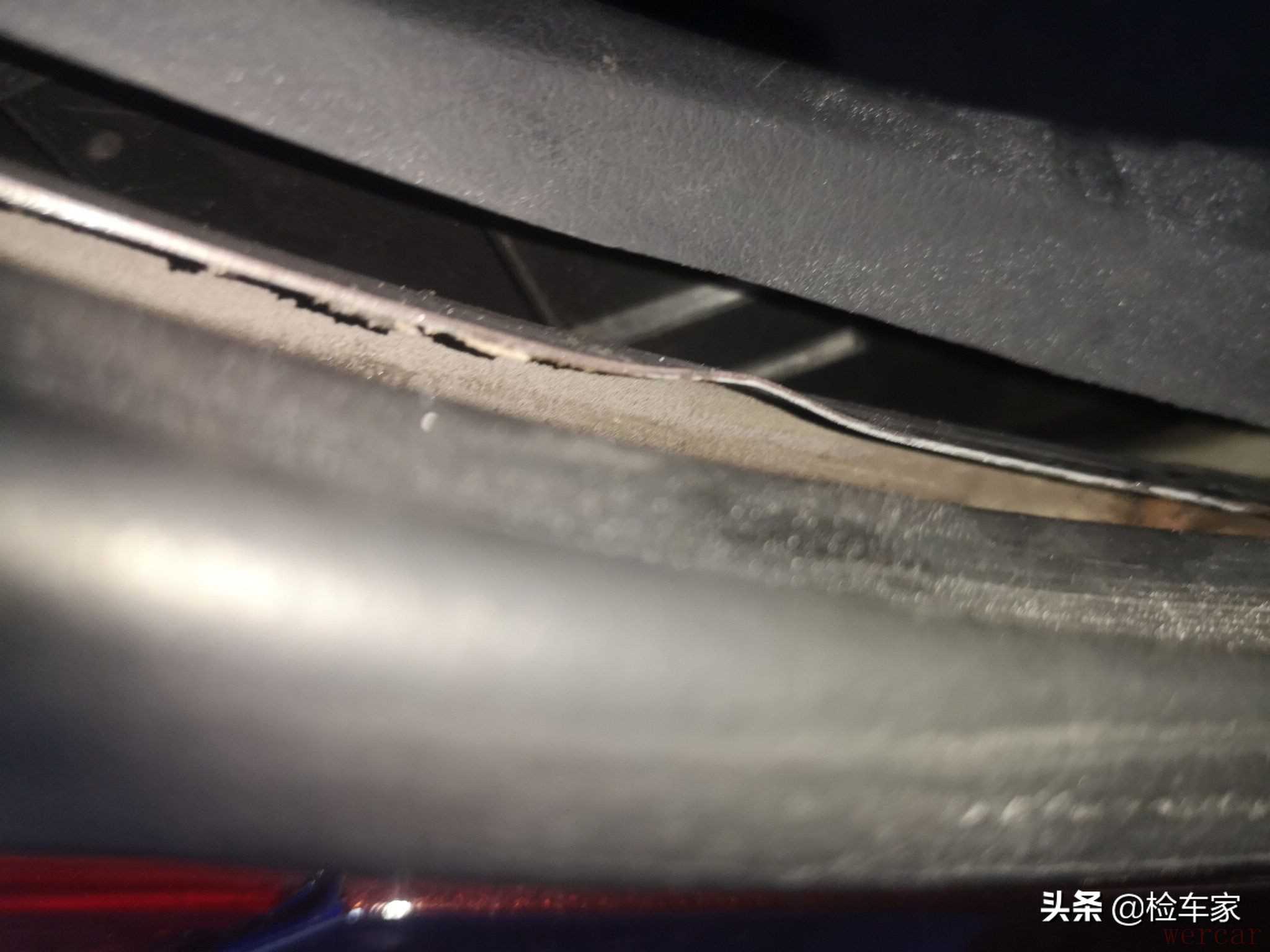 接着检测后备箱内部的时候,发现了后盖存在拆卸更换的情况,这苗头就不太对了,难道后面还有其他状况?