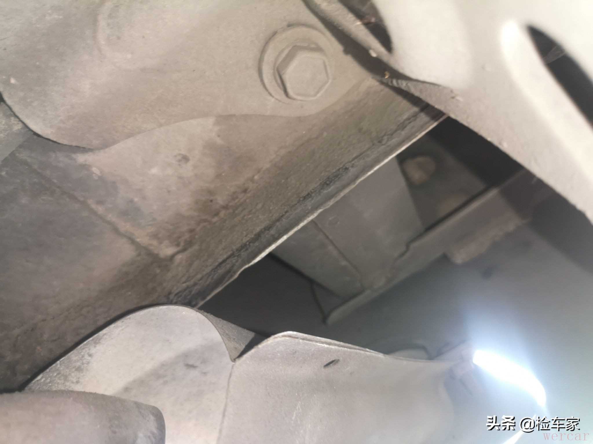 首先我们还是看下纵梁部分,虽然前面的事故还是比较严重的,但是纵梁部分并未发现明显变形或者修复的情况。