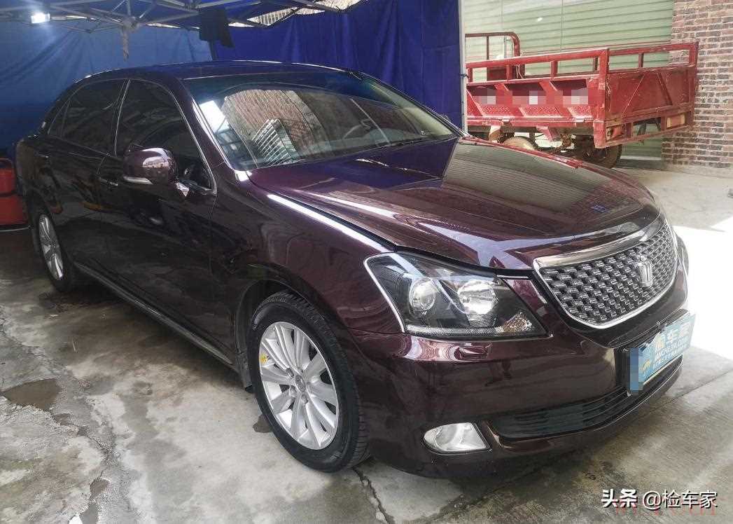 很快啊,英俊我就来到了今天的主角面前,这是辆2012年中旬上牌的丰田皇冠2.5L Royal,比起过于神话12代和更激进的新一代车型,这一代的皇冠完全可以称之为兼容并蓄。实车外观看着成色还比较好,毕竟才区区12万公里,对于丰田来说就是洒洒水的感觉啦。卖家如今报价要15万,相比起当年32万的售价来说,保值率杠杠的。