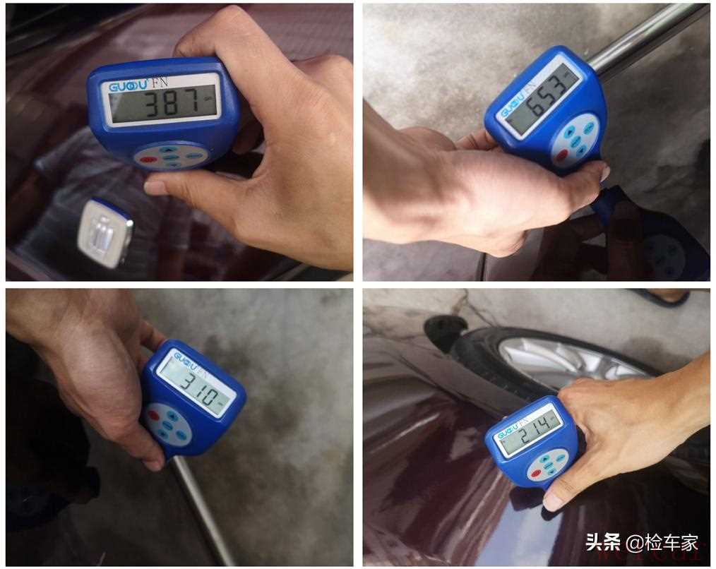 至于右侧其他部分检测下来,都是有不同程度的剐蹭导致的钣金和喷漆,总体来说只有一个左A柱是没喷漆的,其他覆盖件基本都全喷了。