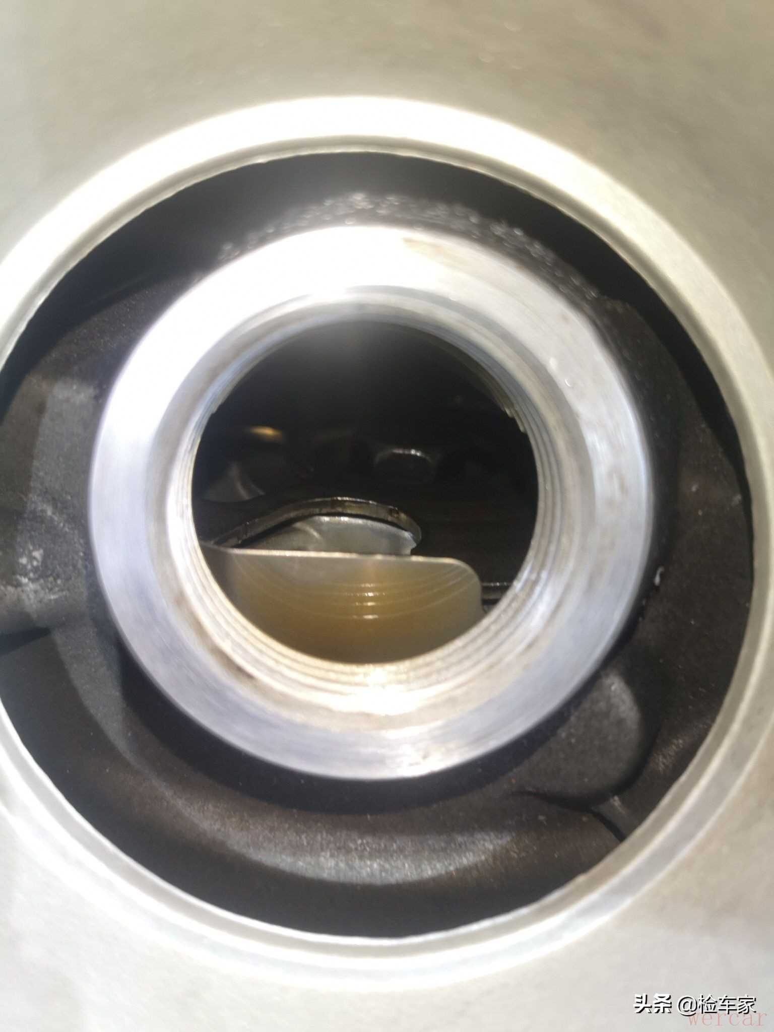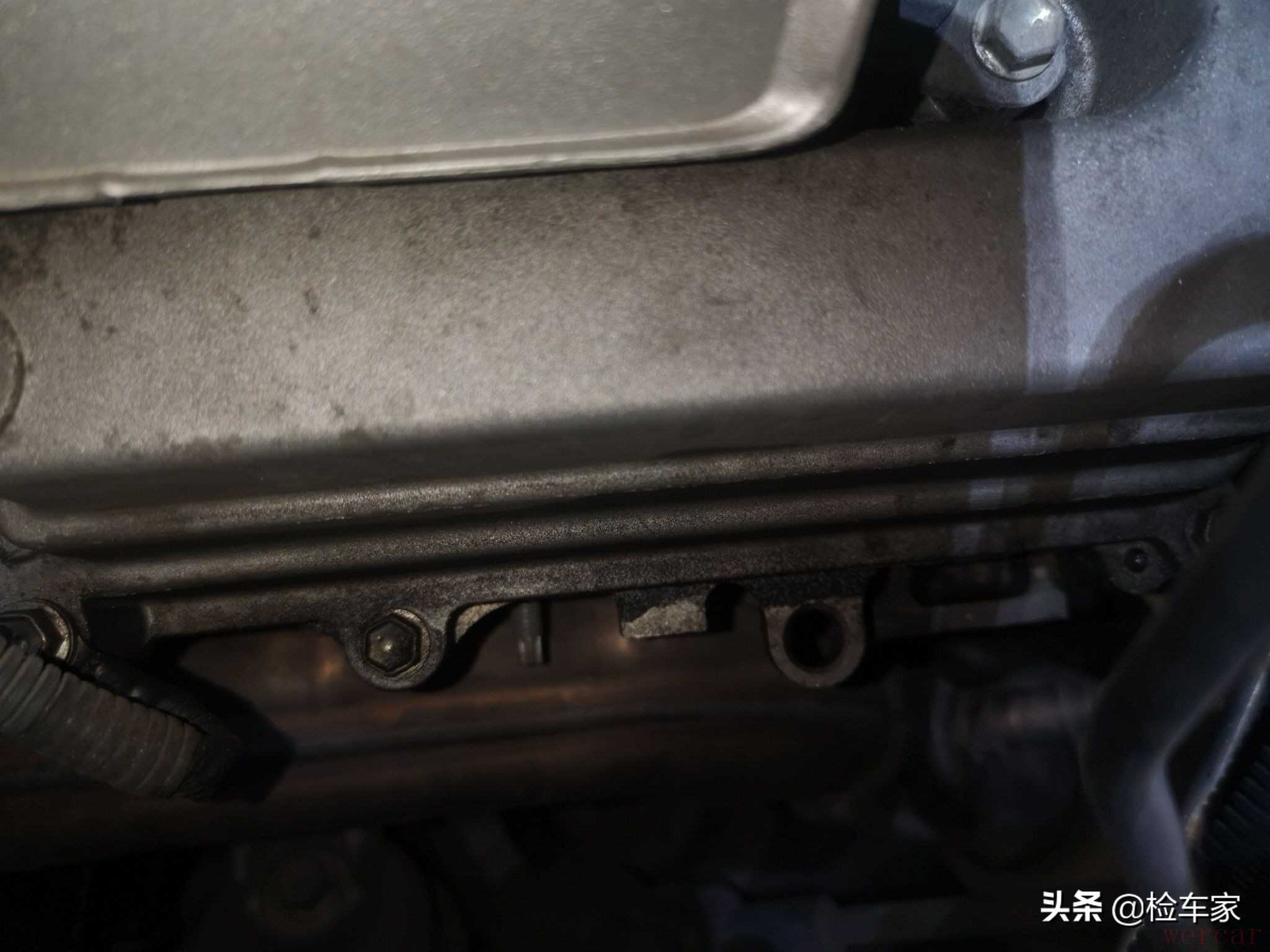 通过机油加注口部分可以看到发动机内部的积碳也不算严重,说明发动机平时保养还是比较到位的,但是漏油的这个问题原车主并未考虑过去维修,说明是在卖车前不久发现的。