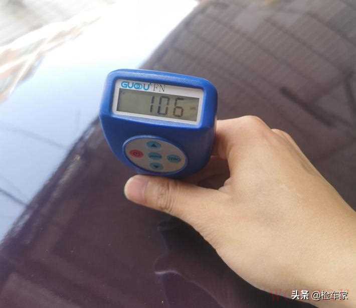 前盖部分检测,发现漆面数值比起其他部位都要更低一些,所以更换前盖也是没得跑了。