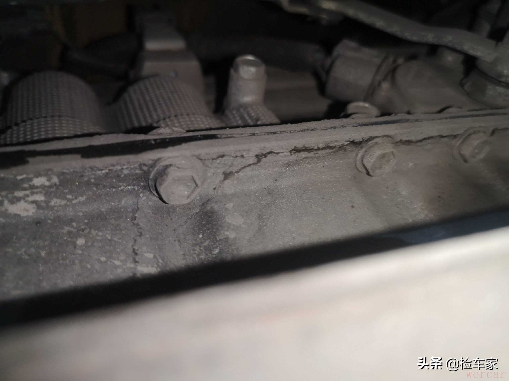 万幸的是,两个前纵梁并未发现有明显的变形或者修复痕迹。但这个前方事故程度到底有多大,有没有影响到发动机本体和进一步的位置呢?