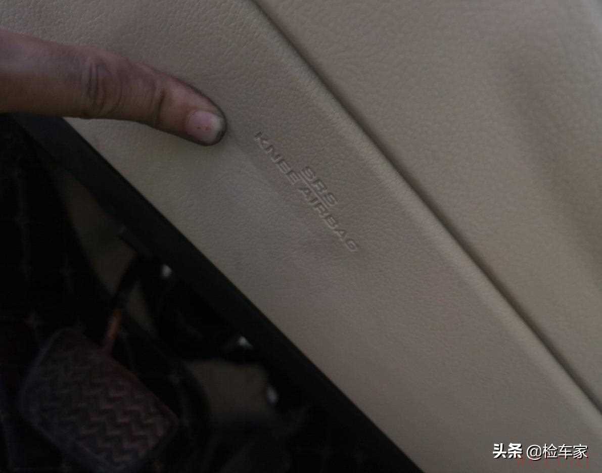 接着检测到膝部气囊的时候,发现了气囊很轻松就能按压下去,这个手感告诉我,这个气囊应该是修复过了,不然不会那么轻松就能按压下去了,当然后期老化也会,但是10万公里的日系车,基本不会出现这个情况。