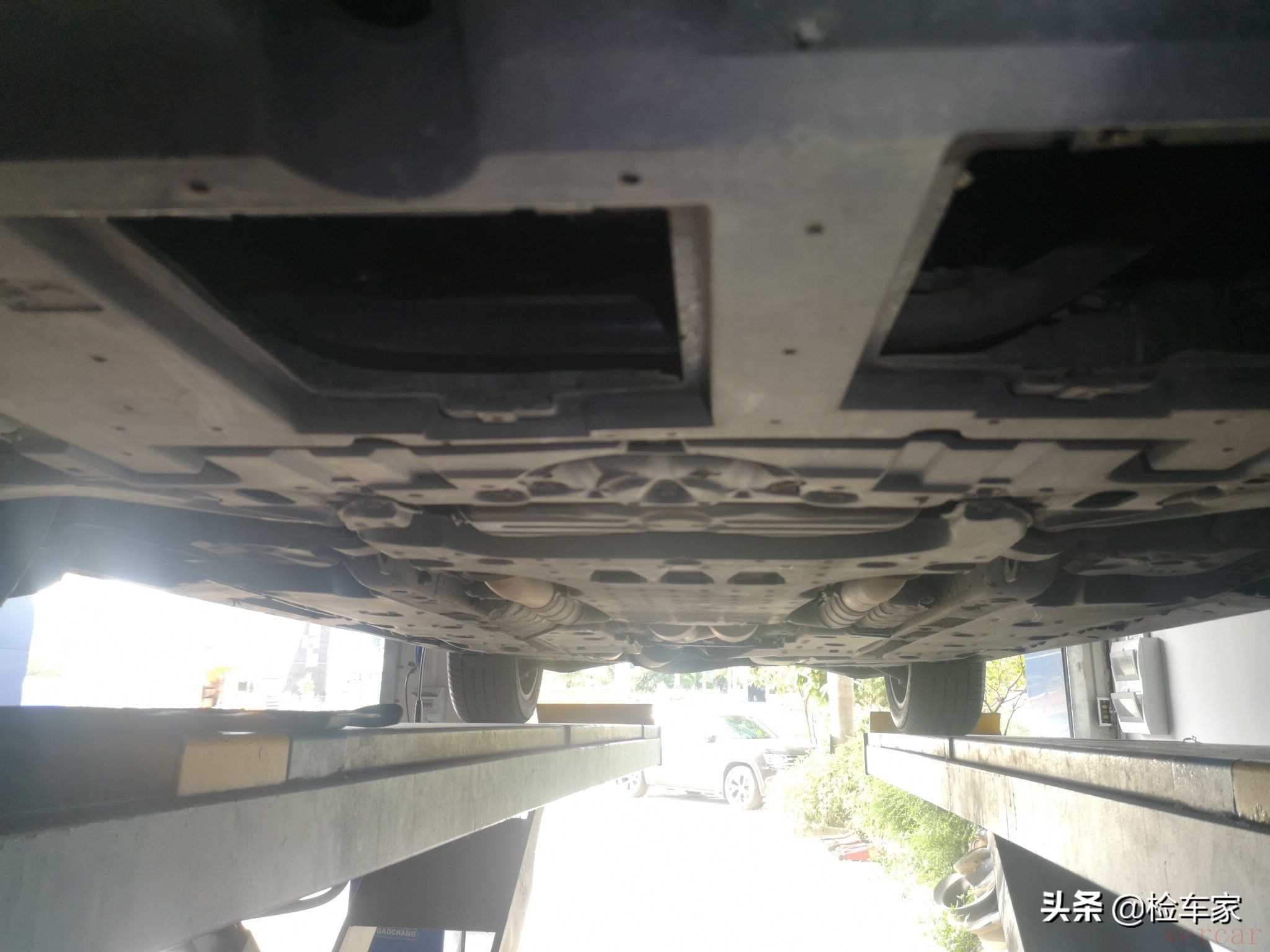 接着我们到修理厂,把车辆的底盘部分举升起来。看看车辆的底盘部分是否还存在其他问题。