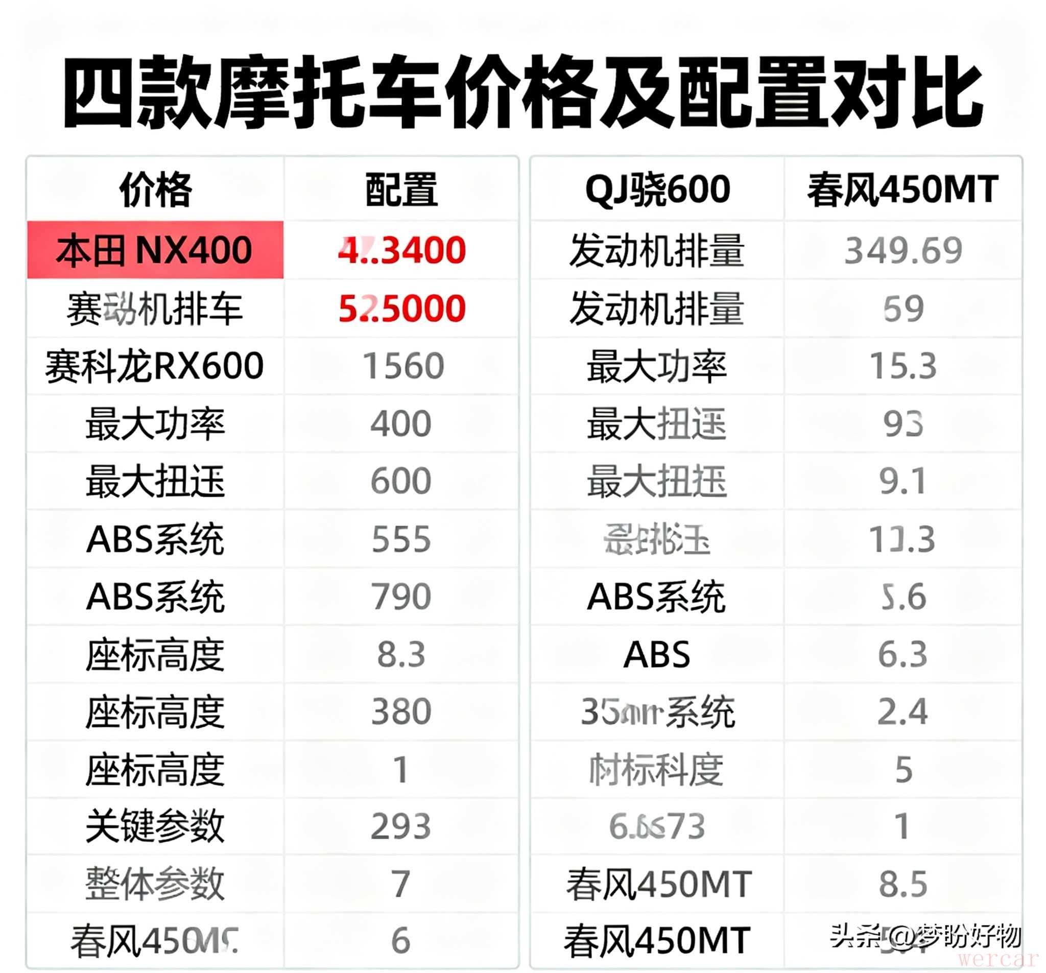 降价后2.998万元的售价,让NX400在同级别市场毫无竞争力:赛科龙RX600排量550cc仅售2.79万元,QJ骁600排量600cc价格只贵19元,功率还远超NX400。同样3万出头的春风450MT,比其多出十多项配置,油耗表现也更优。业内估算,本田的品牌溢价占该车售价的四成以上,消费者花大价钱买到的却是减配产品。