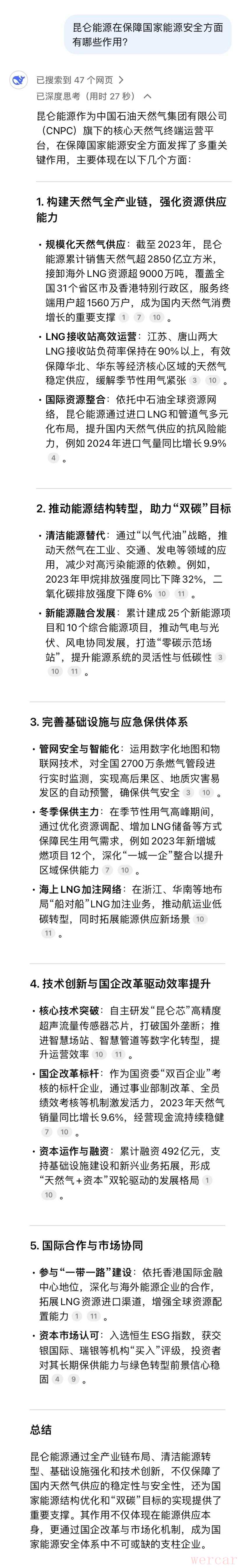 "国家战略:" 在国家能源安全战略中,昆仑能源通常被视为稳定天然气供应