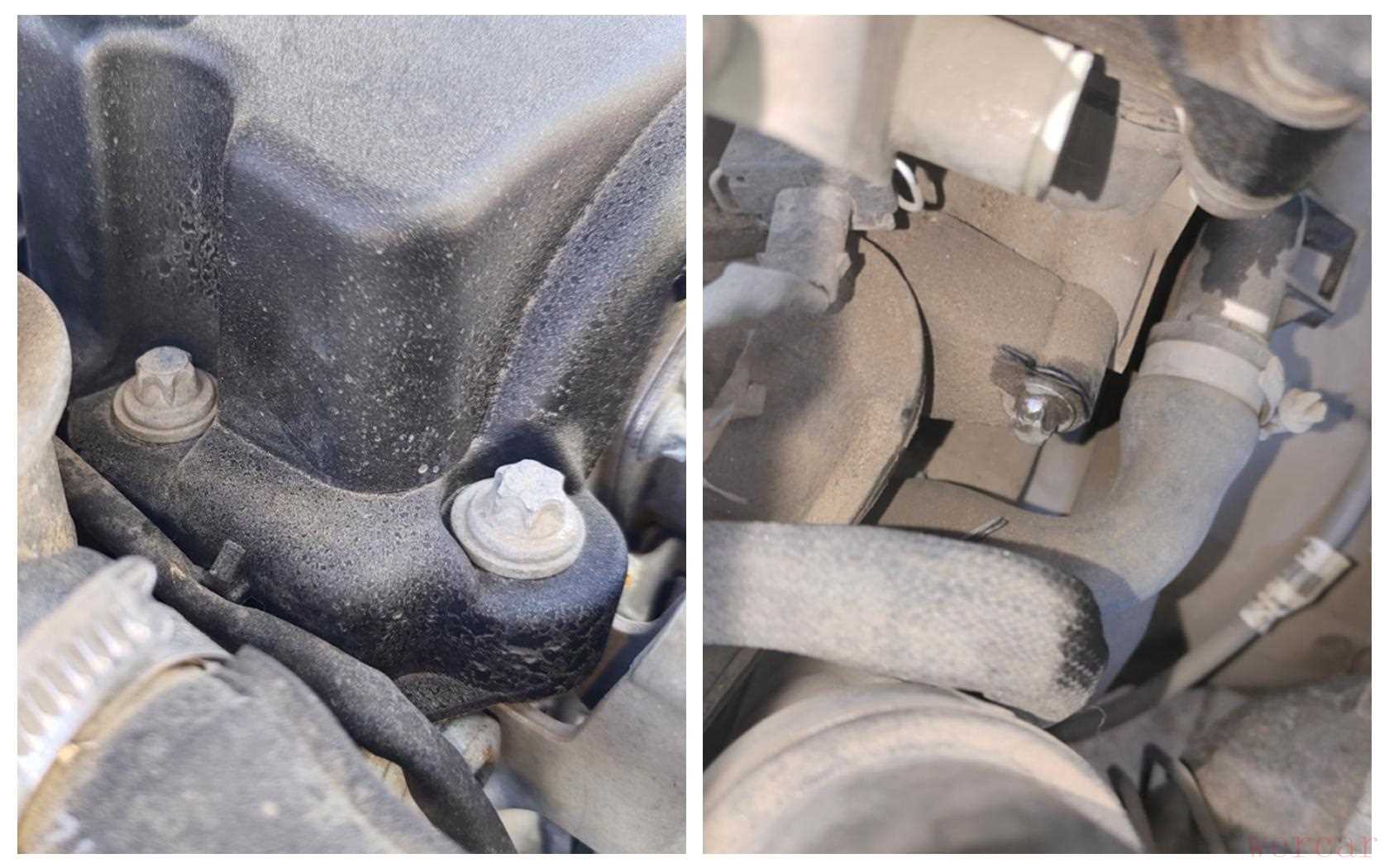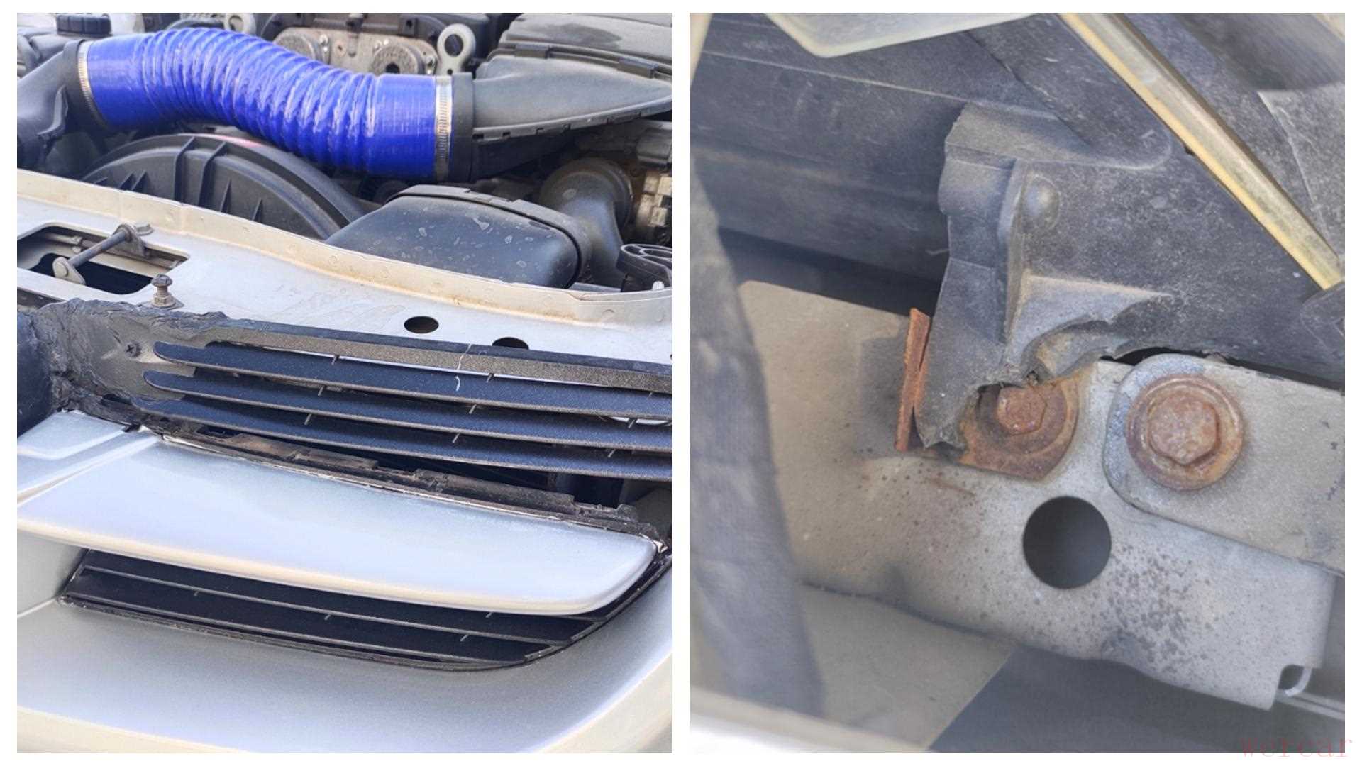 另外,右门的铰链也有过更换,拆卸原因应该也和我上面所说的一样。下面我们再去看一下这辆车的发动机舱部分。