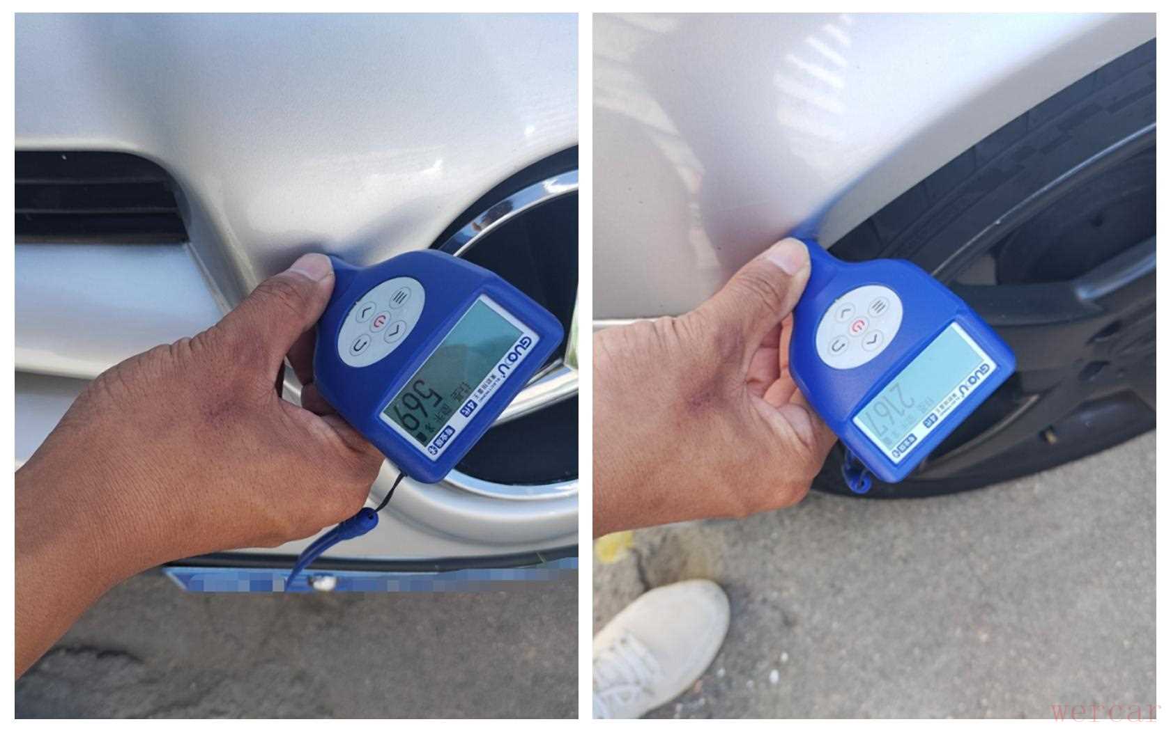 一圈车漆打下来,基本上可以说是遍体鳞伤,不过我也不意外,你要说我检查下来全车原厂漆那才有鬼喽!但是框架部分完好无损,最起码在上面看着是这个情况,也可以初步排除全车有过大事故,不过一会儿在底盘部分还得再确认下。