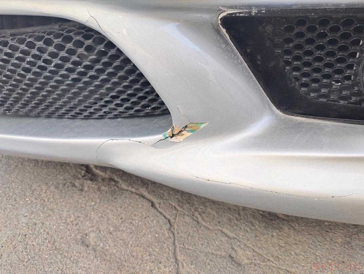 这个中网就这么胡乱用胶粘了一下,这样的维修方式也未免太狂野奔放了吧?大灯也有拆装痕迹,不知道是为了维修还是改装。再往下看,发现灯爪也断了,我觉得都这个年头的车了,也就别计较大灯还是不是原厂的了。