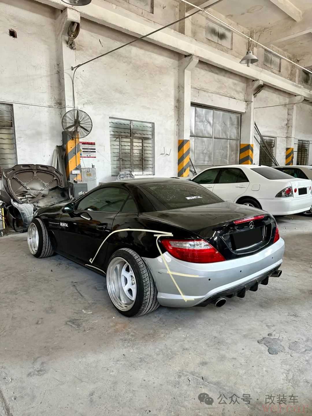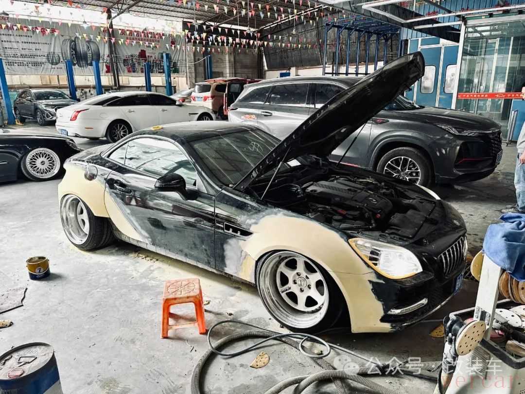奔驰SLK,曾经的它风靡全球,但时过境迁,SLK系列和继任车型SLC都宣布停产了,逐渐变成了一款比较冷门的车型。不过,这对于一些想玩出自己个性的车友来说正合心意!今天就为大家分享一位来自车呔家豪打造的姿态风奔驰SLK。