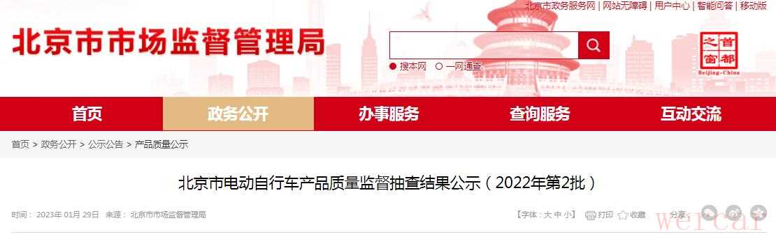 2022年第二批次北京市电动自行车产品质量监督抽查结果正式公示