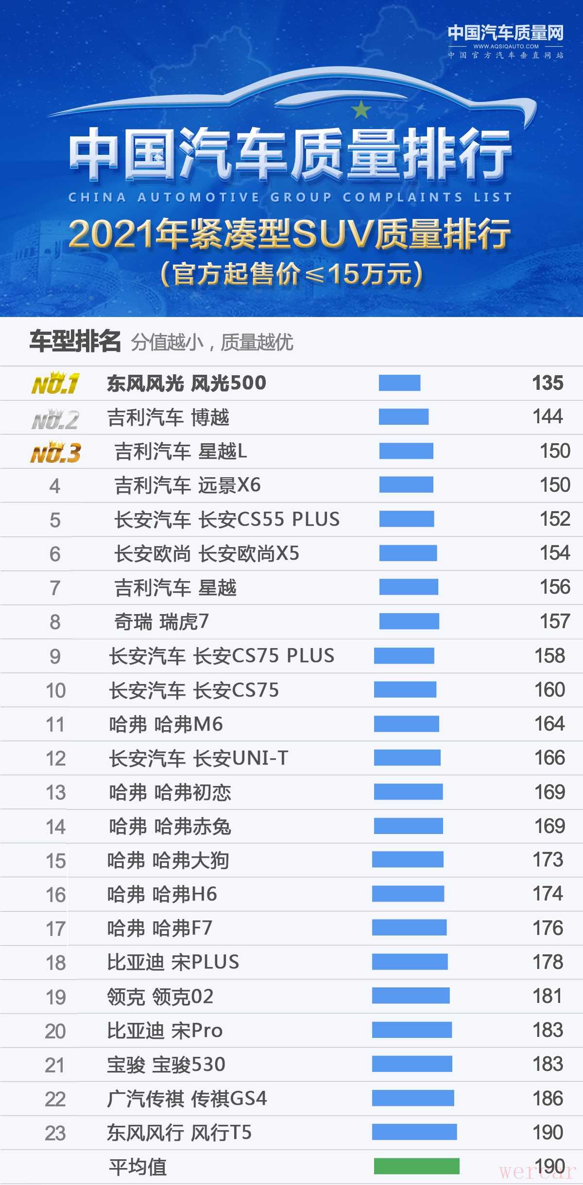 导读:近两年,以性价比著称的国产SUV逐渐被认可,而像哈弗H6、吉利博越、比亚迪宋PLUS、长安CS75、长安欧尚X5以及哈弗大狗等,都有着非常高的热度。不过大家买国产SUV还是要慎重,根据中国汽车质量网最新发布的紧凑型SUV质量榜单来看,质量表现合格的国产SUV共有23款,吉利、长安、哈弗和比亚迪都有多款车型入榜,比如吉利博越、长安CS75、哈弗H6、比亚迪宋PLUS等,而奇瑞、广汽传祺、宝骏以及东风风行等也有车型入榜。买国产SUV要慎重!质量最好的23款车型,长安CS75前十,哈弗爆发!