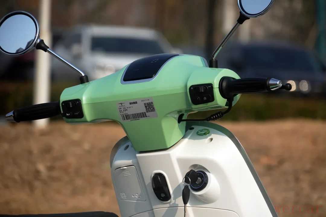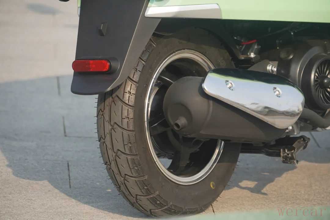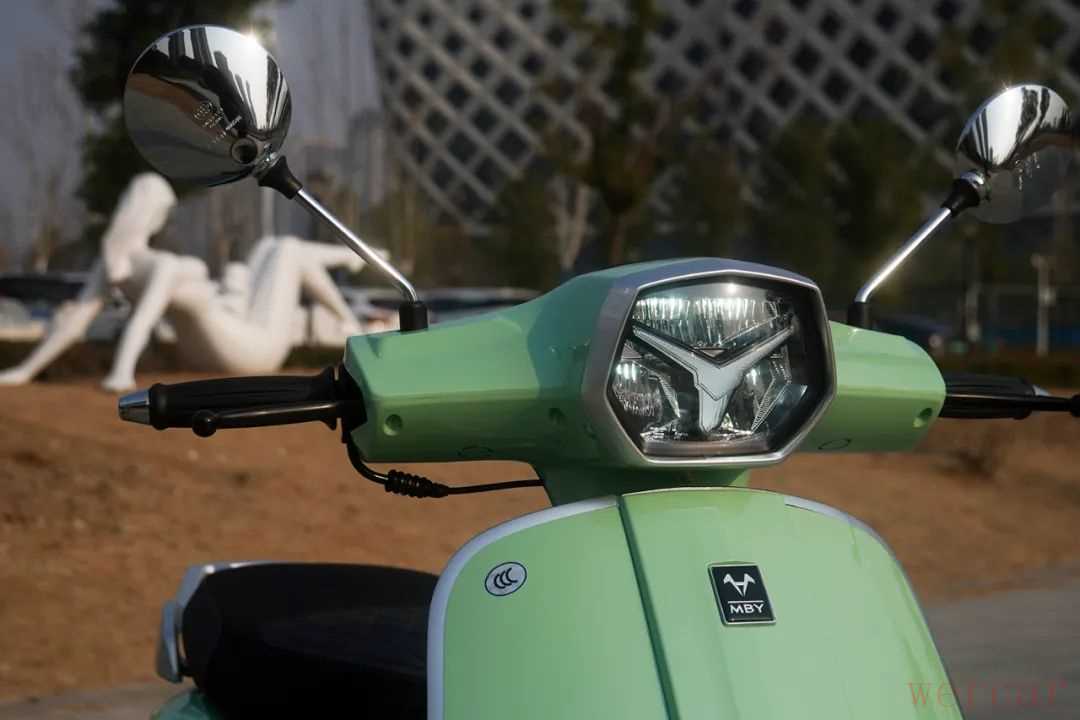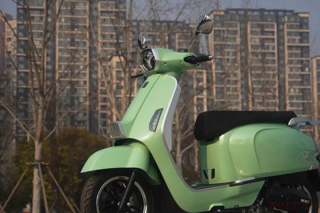 整车的豆蔻绿色漆水涂装并不显得廉价,内含闪粉的珍珠漆反而能给人清新典雅的观感。不过包括头灯、前面板边框等位置直接采用银色塑料件就有些过于简单,这些部位如果与后视镜一样使用镀铬件,会明显提升整车的精致感。此外,它部分塑料件边缘接缝也处理得不够均匀平整,不过考虑到售价,这些并不影响到日常使用的地方,其实也可以接受。