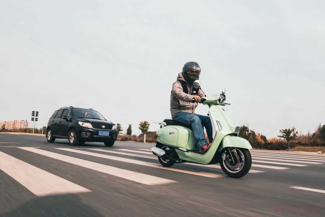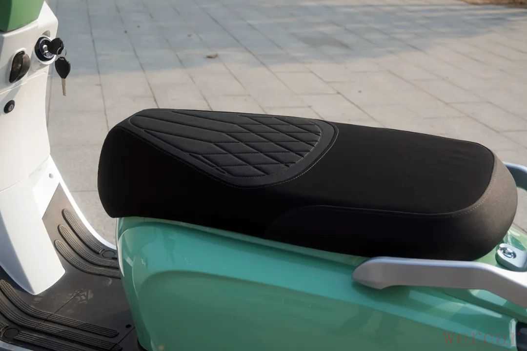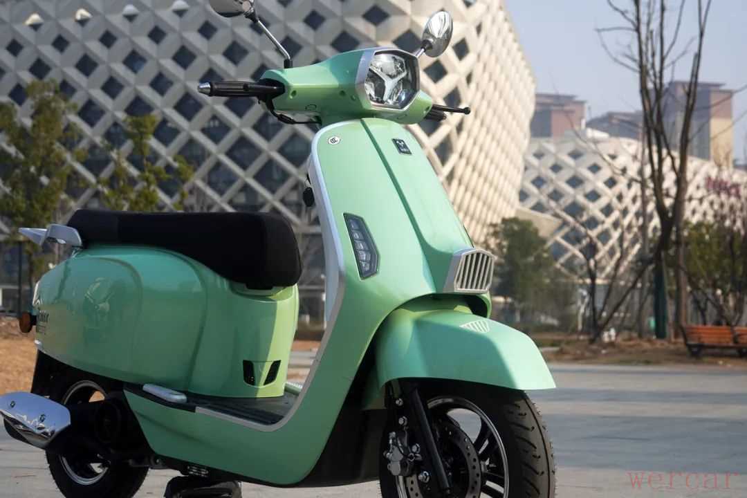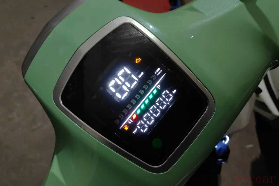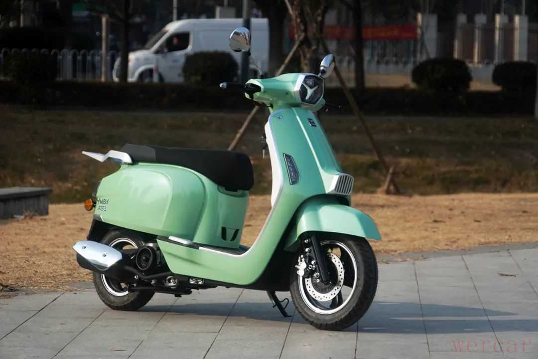 整车的豆蔻绿色漆水涂装并不显得廉价,内含闪粉的珍珠漆反而能给人清新典雅的观感。不过包括头灯、前面板边框等位置直接采用银色塑料件就有些过于简单,这些部位如果与后视镜一样使用镀铬件,会明显提升整车的精致感。此外,它部分塑料件边缘接缝也处理得不够均匀平整,不过考虑到售价,这些并不影响到日常使用的地方,其实也可以接受。