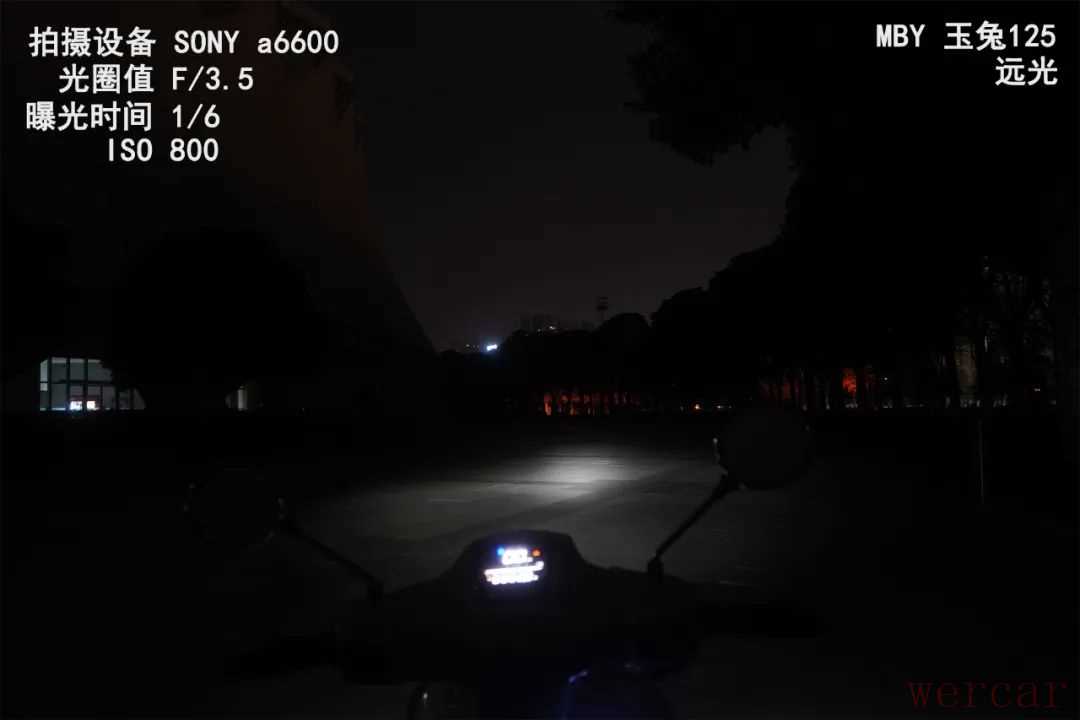玉兔125的灯光实测极具反差感,近光灯在铺光范围上表现正常,但亮度实在是一般;而远光的情况正好反过来,亮度正常了,但照射角度却过于集中且位置偏低。灯光方面的整体表现,实话实说是弱于目前125级别主流水平的。