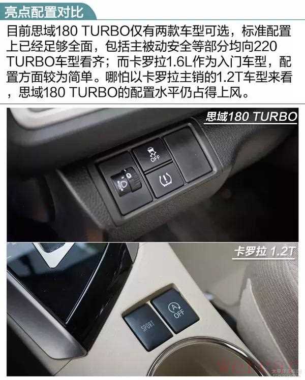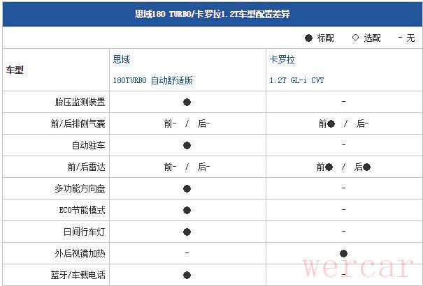 由于参与对比测试的卡罗拉1.6L CVT价格与思域180TURBO CVT并不在同一级别,因此在配置对比中,我们以卡罗拉1.2T作为参考,以示公平。
