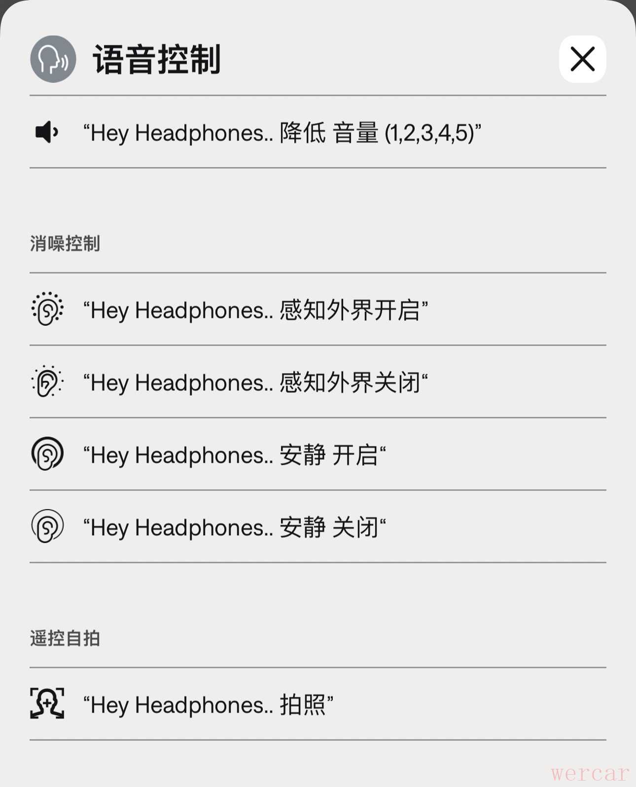 另外,我发现还有一些新增的有趣小功能,比如“语音控制”。它类似于手机里的语音助手,但只负责控制耳机,通过语音唤醒词“Hey Headphones”来控制播放/暂停、调节音量、接听电话等功能(同上),甚至还能遥控手机自拍,这个功能让耳机化身相机快门遥控器,只需摆好姿势,让耳机帮你捕捉生活中的精彩瞬间。在我看来,这个功能显然是为当下喜欢拍照的年轻人设计的。