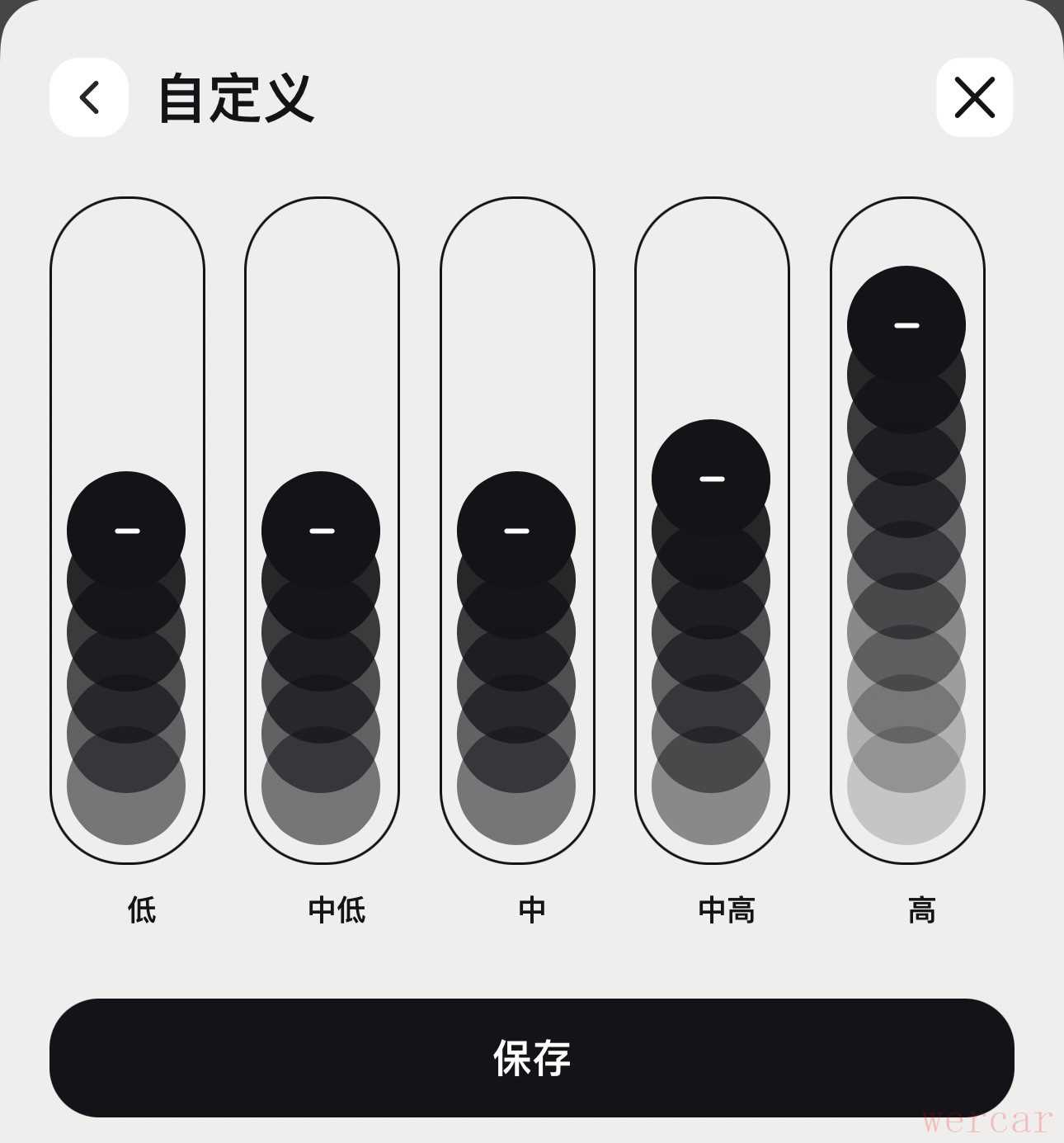 如果追求更细腻的听感,Bose QCE App的均衡器值得一玩。除了5个预设好的EQ,我也可以手动微调低/中/高音的增益。在我看来,由于这款耳机本身的低频量感多一些,所以我个人会比较喜欢高音增强(如下图示)。高频的亮度上来了,声音的通透感也会表现得更好一些。