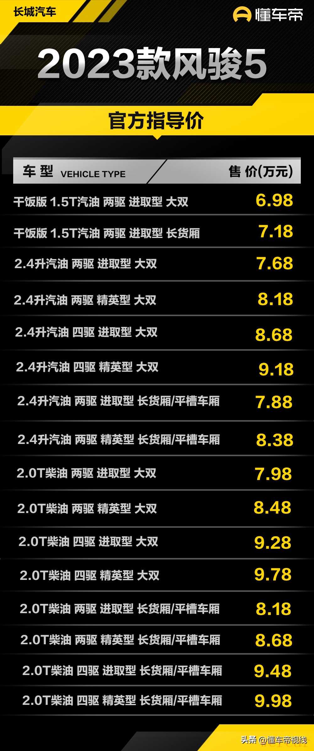 "新车 | 售价6.98万元起,2023款长城风骏5上市,新增平槽长货厢版"