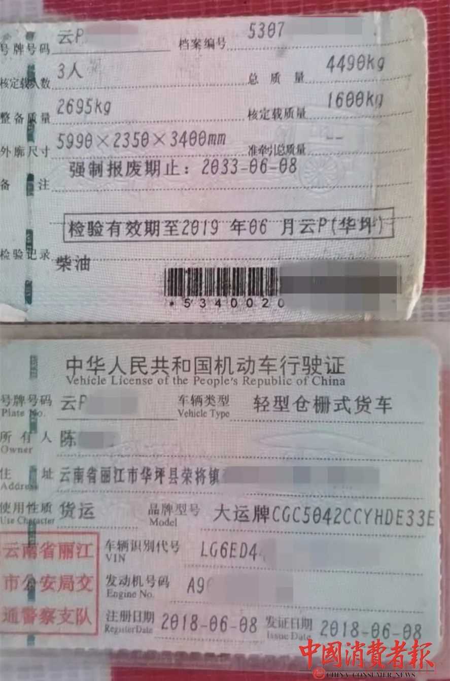 自从接到通知,陈师傅的生活就彻底被打乱了,整天为这事发愁。他的“云P”牌照的大运牌轻型仓栅式运输车(以下简称大运轻卡),如今在交管部门处于锁定状态,不能年审,不能上路,也不能交易。“买车是为了养活一家人,我上有老下有小,两个娃儿读书,只有一个人挣钱。”陈师傅说。