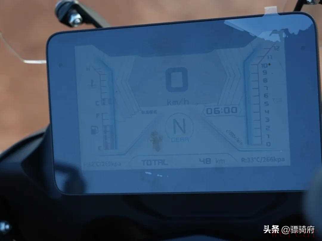 7寸的TFT全彩仪表具备前方道路实景显示、手机投屏、胎压监测等功能,并可显示坐垫/手把加热信息。