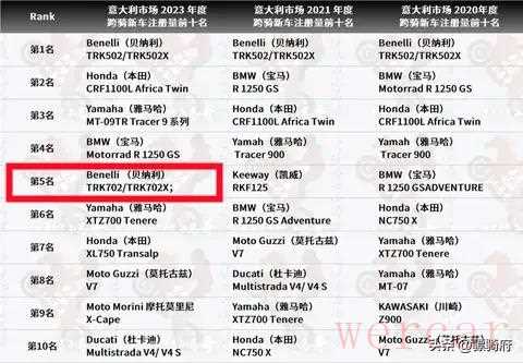 TRK702X这款车在意大利也取得了较好的成绩,2023年在意大利市场刚刚上市仅五个月,就取得了年度销量前五的成绩,很多人说是因为低价策略,其实并不是,它的意大利售价折合约6万元人民币,基本上与本田小非双750和宝马F750相当,哪里便宜了?那它是凭什么力压那么多豪门?要知道,意大利作为摩托车文化发源地之一,同时也是世界摩托车生产制造强国,人家可不是没见过世面的土老冒。这个问题大家自己去寻找答案吧。
