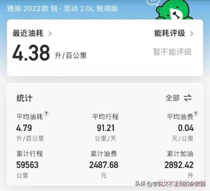 3.省油(废话)。大油门随便踩,夏天空调随便开,照省不误。目前总平均油耗4.78L/100km,最高5.88L/100km,最低4.35L/100km。不到50L的油箱轻松跑800-1000km,不需要充电,既有电动车的平顺、线性、响应快,又和燃油车一样便利。
