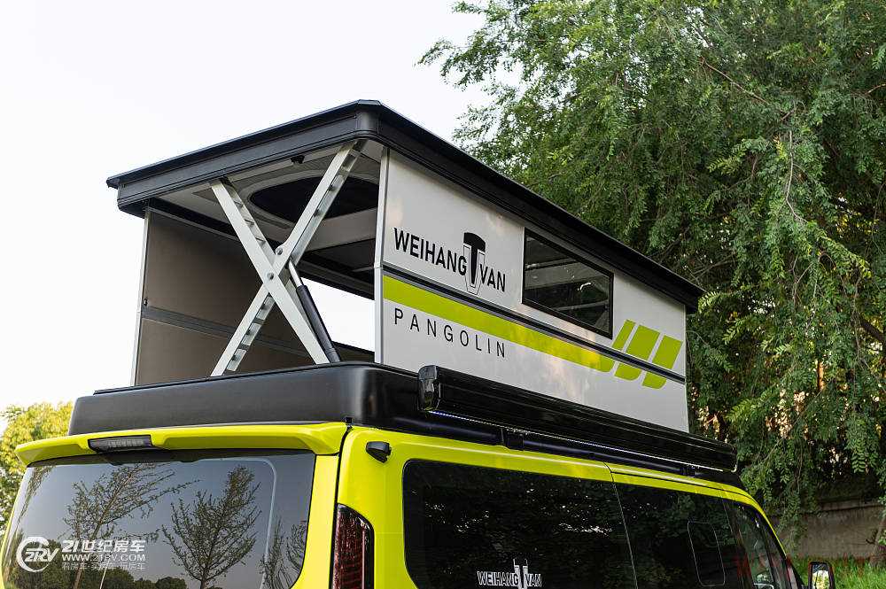 它的一大特点是拥有一个电动升顶结构,可以在不影响通过性的情况下,为车内提供更多的空间和舒适度,升顶结构采用了硬质材质和X型电动液压支撑臂,保证了可靠性和稳定性。升顶区域还配备了照明灯带和通风口,增加了驻车时的采光和通风,卫航穿山甲房车的外观设计体现了卫航品牌的特色和创新,也符合了年轻消费者的审美和需求。