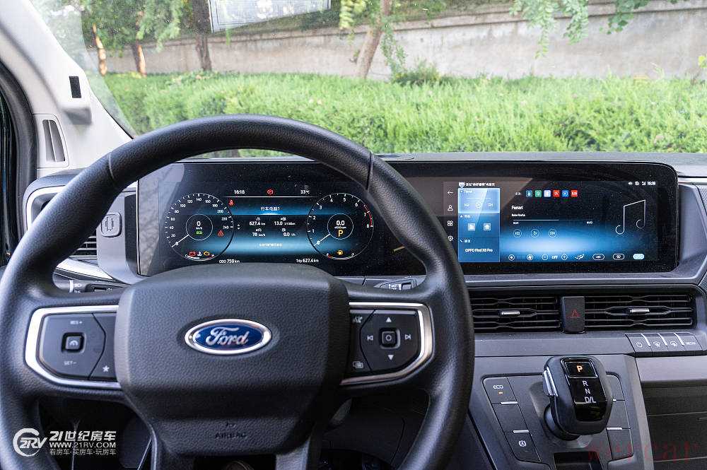 整车尺寸为5341x1986x2017 (mm),基于江铃福特全顺底盘,轴距为3300mm,额定载客6人,轮胎尺寸为215/65 R19,动力上搭载了一台2.0T汽油发动机,最大功率162kW,最大扭矩350Nm,匹配9AT自动变速箱,满足国六排放标准。这套黄金动力组合不仅久经考验还具备优异的驾驶舒适性和燃油经济性。