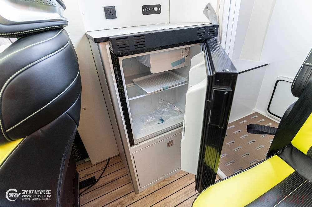 纵置拼床旁边放置了一个简易操作台,下方有一个沧浪49L冰箱和储物柜,只能制作简单的食物或冷餐。