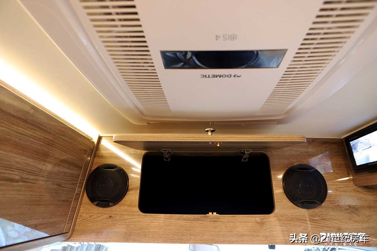 会客区顶部配备一部220V多美达顶置空调用于夏天制冷,而在冬季,该车另配备一部韦巴斯特进口燃油热水暖风系统。