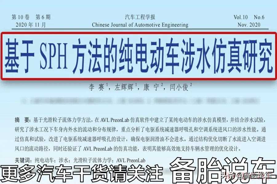 举个例子,李赛等人在《汽车工程学报》上面发了篇论文,《基于SPH方法的纯电动车涉水仿真研究》。