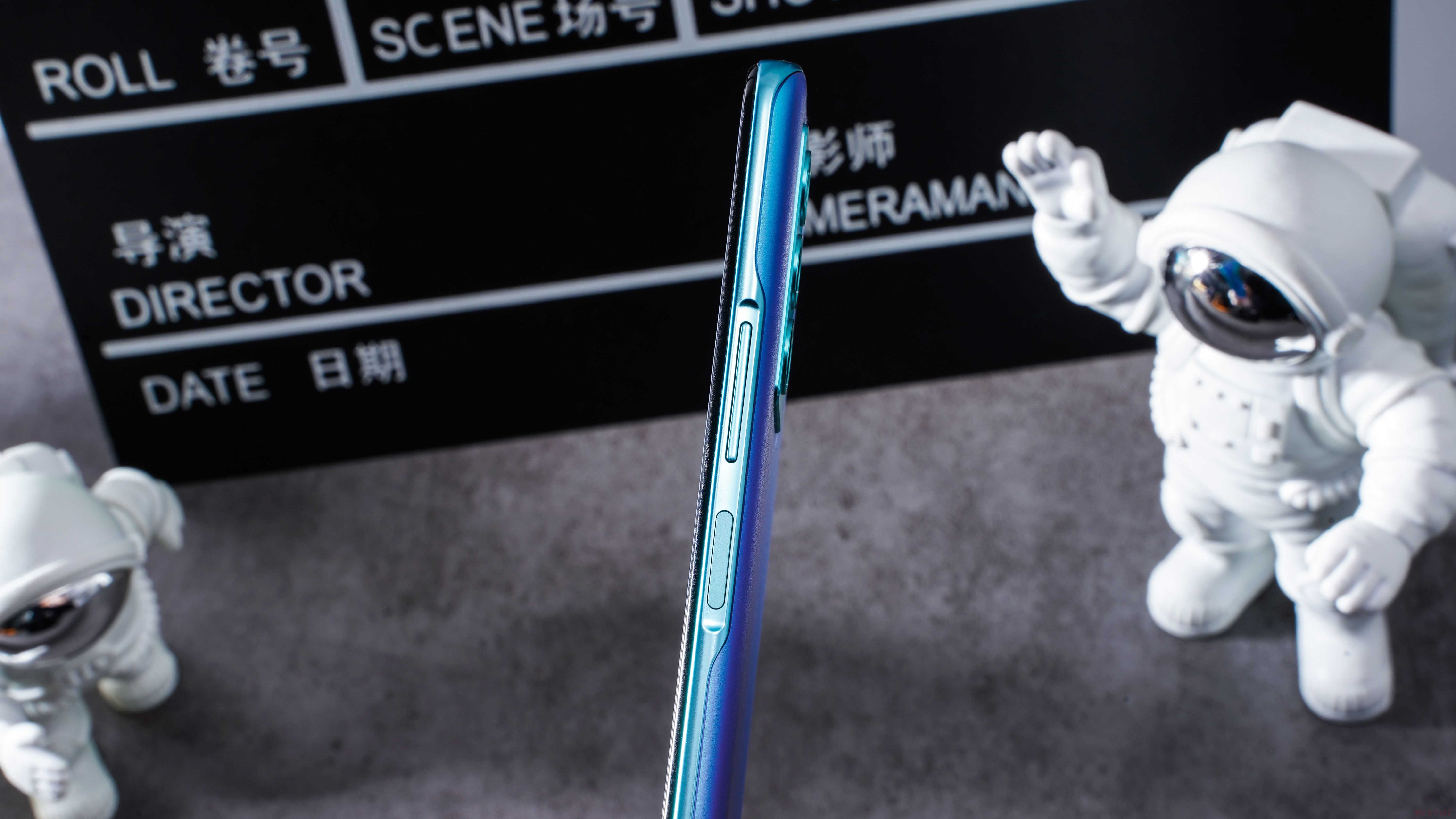 vivo T1的侧边是音量按键和电源+指纹二合一按键,侧边指纹是笔者最喜欢的解锁方案,电容式指纹解锁速度快、效率高,解锁方式也很符合日常用机习惯。而且它的按键位置很靠近中间,拿起手机时拇指刚好可以放在按键上,手小的用户也可以轻松按到。需要给个好评的是,手机顶部保留了“极为先进”的3.5mm耳机孔,让笔者尘封许久的有线耳机派上用场了。