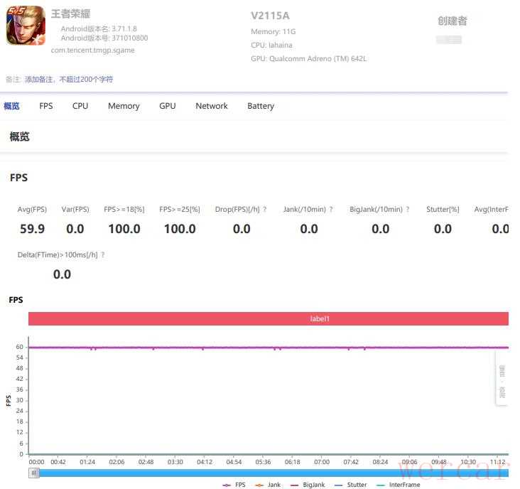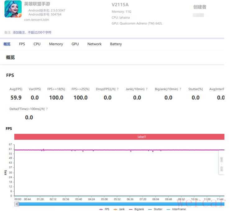日常使用时,笔者主要使用vivo T1运行微信、微博、B站等软件,骁龙778G处理器的性能完全可以提供流畅的用机体验,而在使用过程中,LPDDR5+UFS 3.1最明显的体验升级则是速度,下载、安装、开启应用或文件时的速度更快。尤其在游戏方面,游戏在冷启动时,加载速度很迅速,对急性子用户很友好。说到手机性能,游戏无疑是最好的试金石,但想要用vivo T1玩《原神》这个级别的游戏未免有些强“机”所难了,笔者选择的是平时经常玩的《英雄联盟手游》《王者荣耀》。经实测,《英雄联盟手游》的平均帧率为59.9帧,《王者荣耀》的平均帧率为59.9帧。从帧率测试图中可以看出,vivo T1可以流畅运行这两款游戏。笔者日常玩游戏时,对线、团战、冲高地等关键时刻,vivo T1从来没有掉过链子。而且手机的散热表现不错,午休时玩一两个小时LOL手游,五重液冷散热可以保证性能长时间稳定发挥。