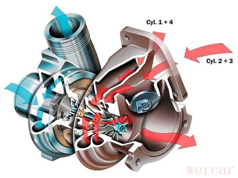 而双涡管设计要求每个气缸的排气歧管分别引出。斯巴鲁希望能尽可能将热量保存住,,所以采用了单涡流设计。