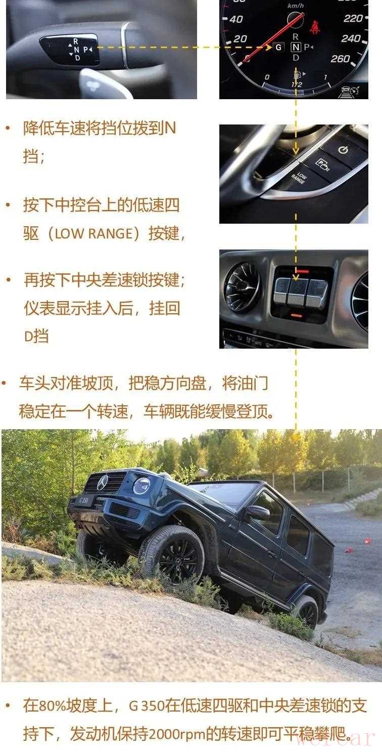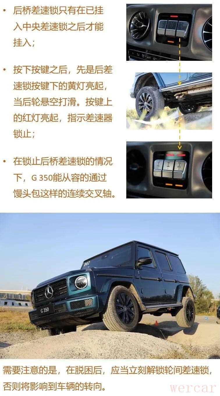 其实在大部分时候采用全时四驱的奔驰G级仅依靠电子辅助就能完成大部分越野任务三把差速锁只是用于脱困的