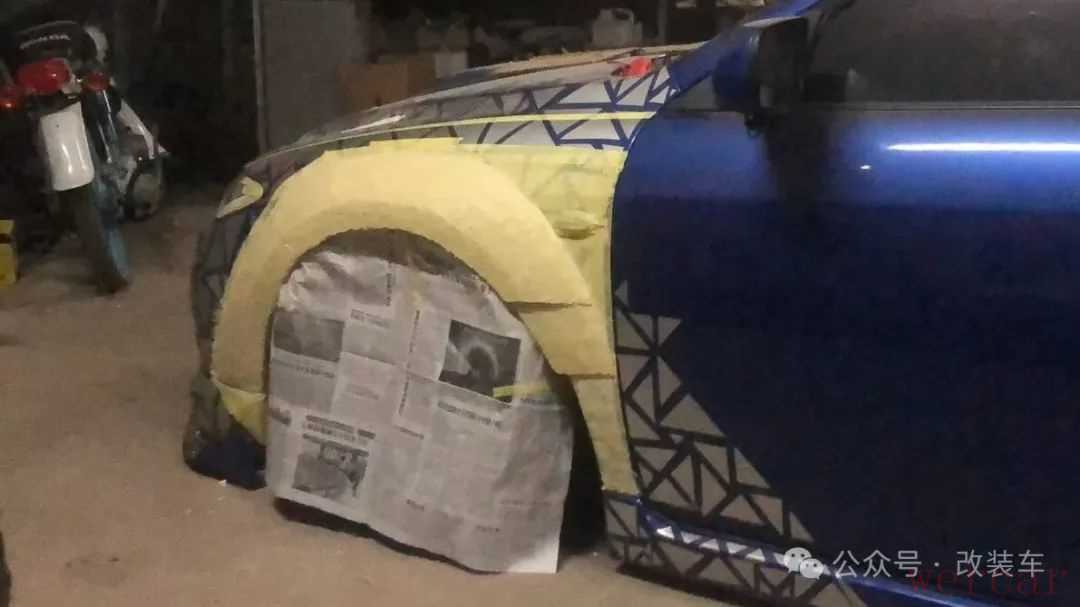 "去完车聚回来后就有个大想法—上宽体!那说搞就搞吧,自己动手,丰衣足食,宽体+MX-5大嘴前杠,前前后后折腾了我40天,虽然花了很多时间,但最终出来的效果还是很棒的!"