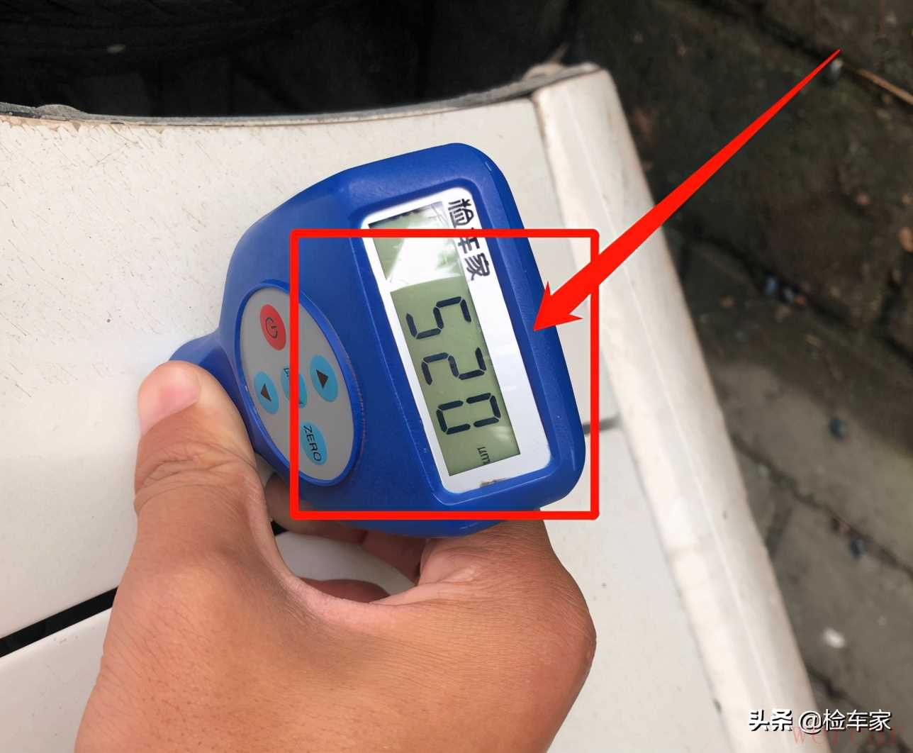 检测右前叶子板漆面数值520um,同样也达到了钣金修复范围。