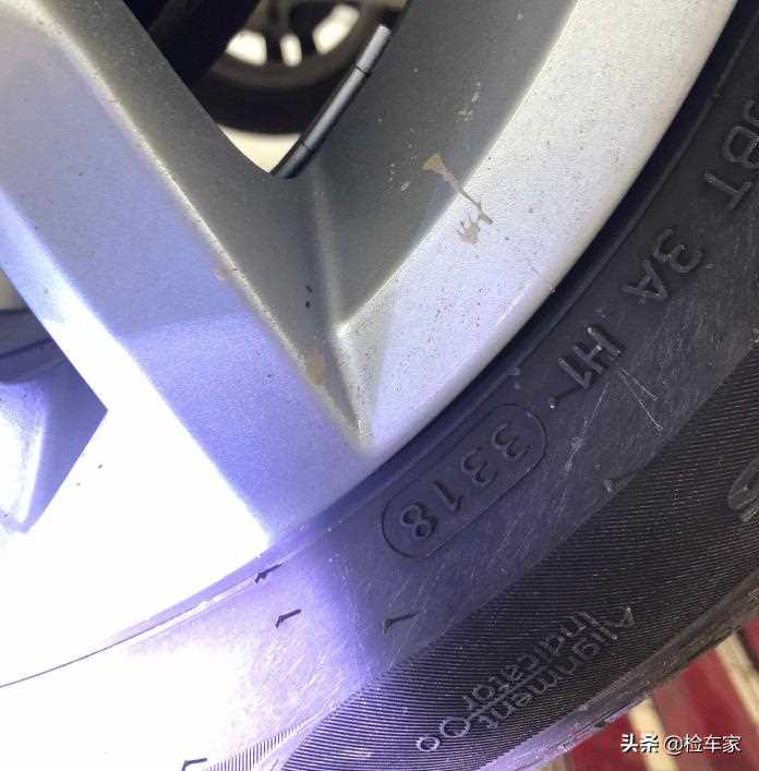 检测四轮轮胎及轮毂,左前轮胎生产日期与原车出厂日期不符,存在更换过。
