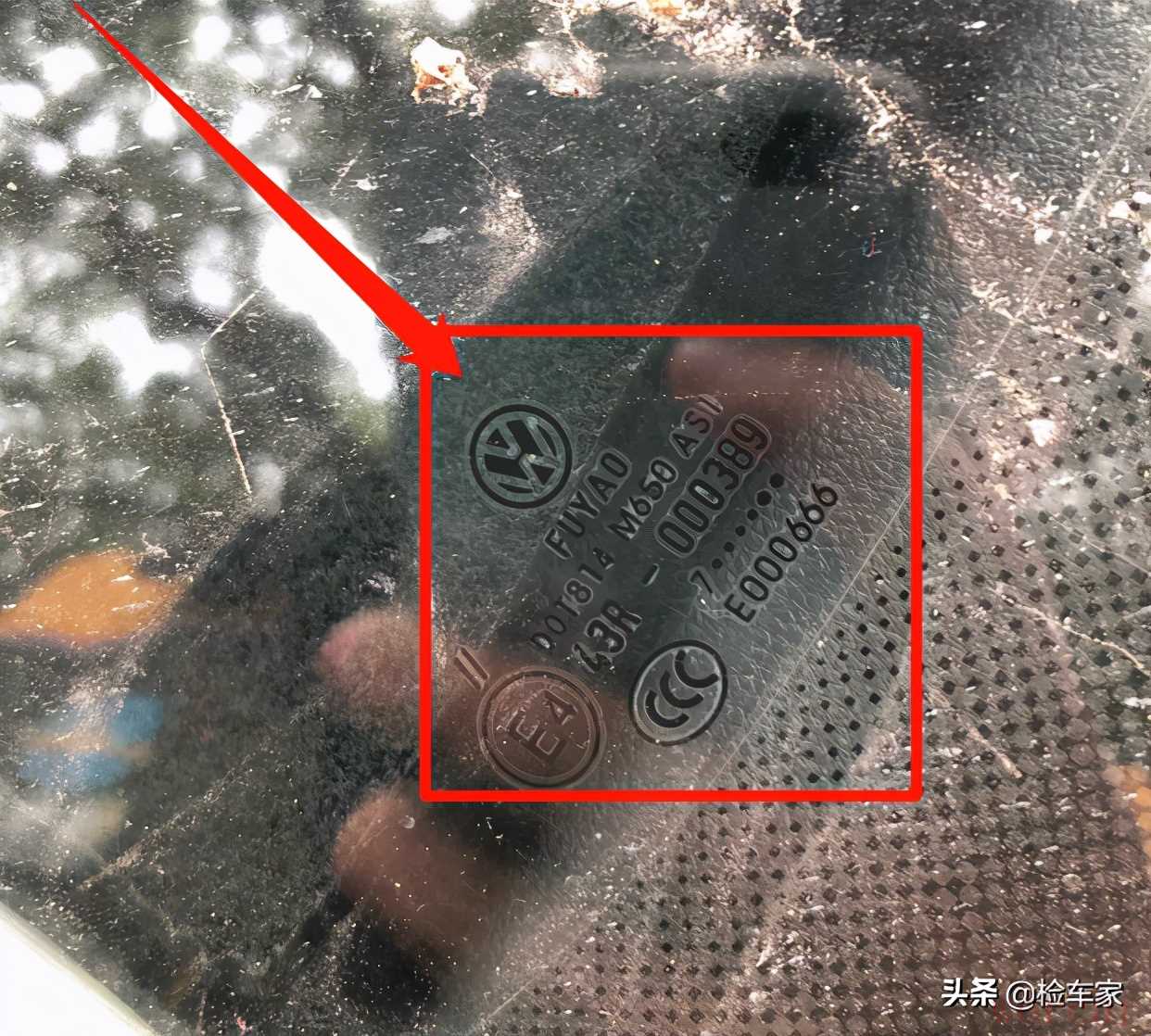 因为前面有点问题,为了知道碰撞的严重性,我便检测了前挡风玻璃,可以看到上面出厂日期及内侧胶线与车辆出厂日期基本符合内侧无重新打胶痕迹,可以排出前挡风玻璃有过更换情况。