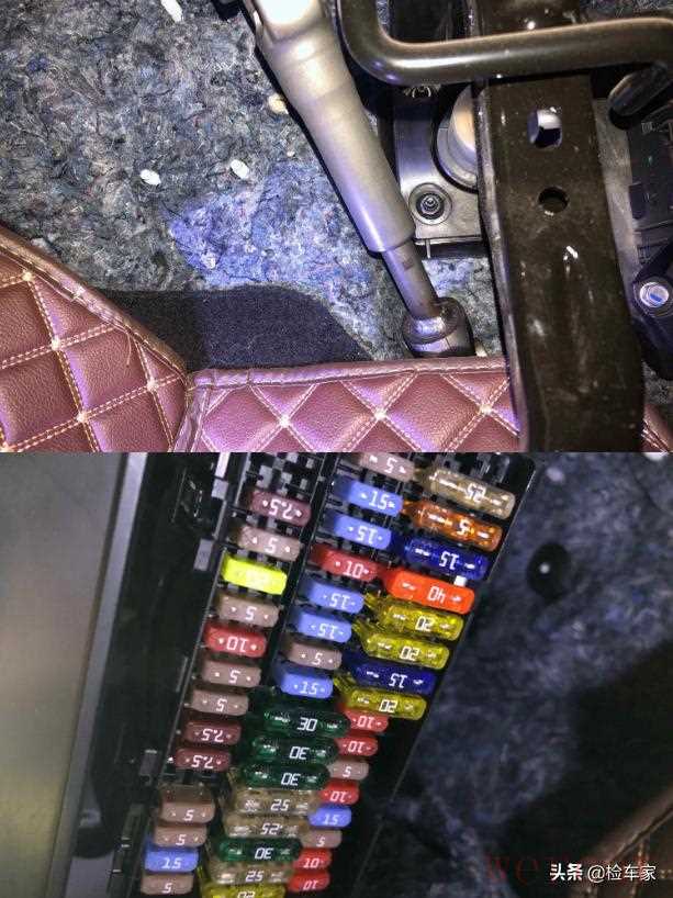 检测方向机管柱及保险丝盒内部,螺丝无拆卸生锈痕迹保险丝盒内部无泥沙。